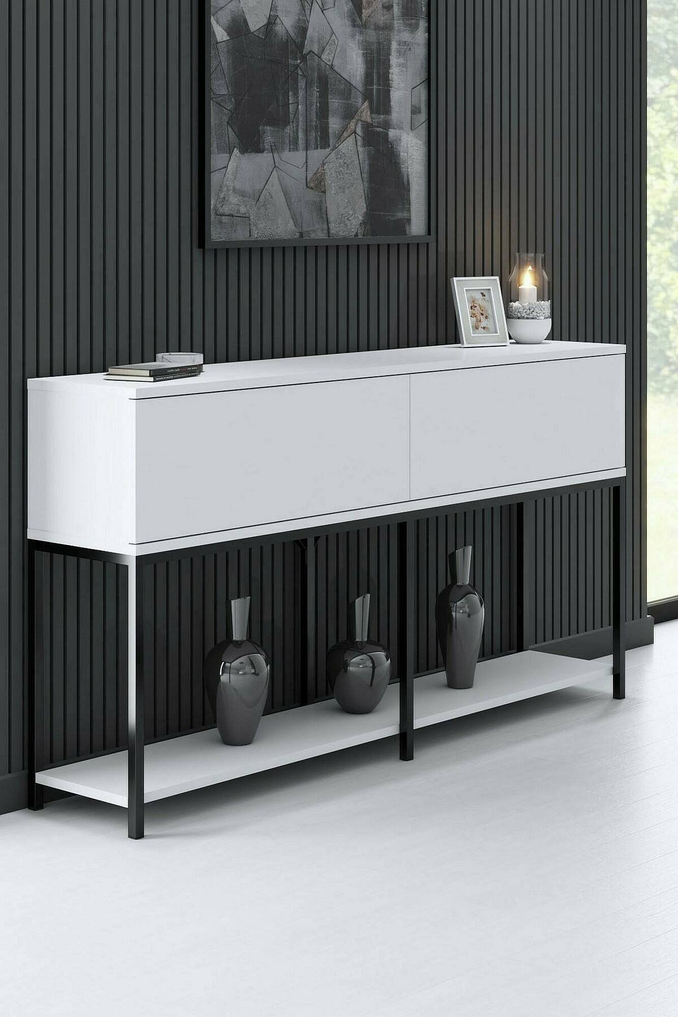 Credenza Dgarzitt, Soggio-buffetRno, woonkamer, bijkeuken, 160x35h80 cm, Zwart-wit