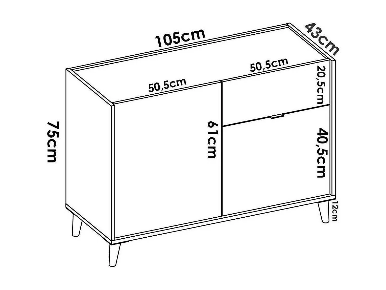 Djuli dressoir, Woonkamerbuffet, Modern woonkamerdressoir met 2 deuren, 105x43h75 cm, Wit en Eiken