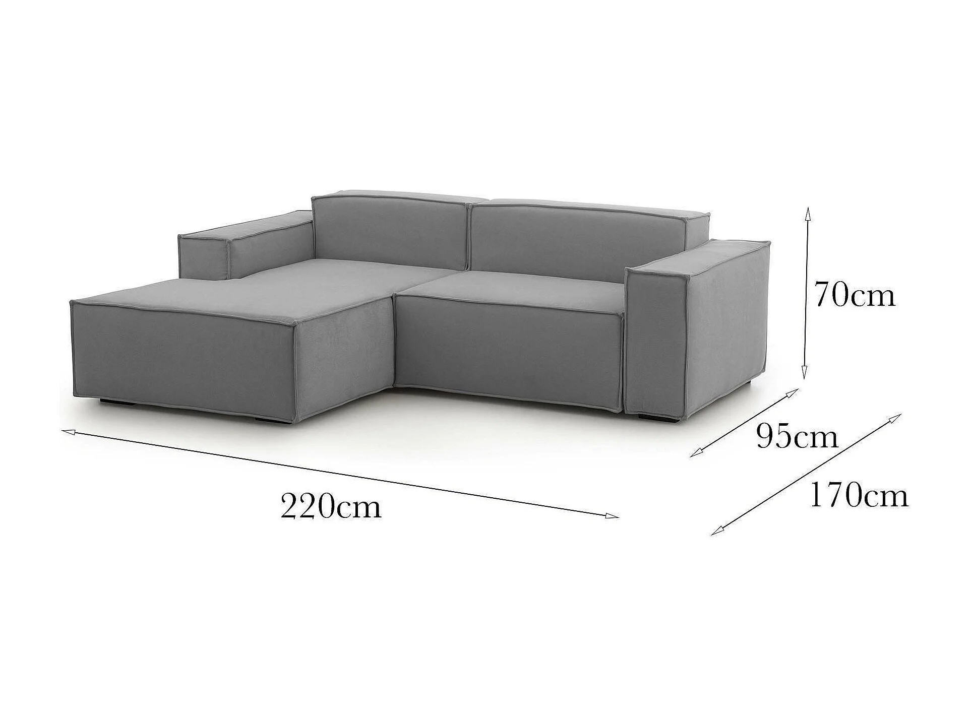 Dkivil vaste bank, 2-zits modulaire bank met linker schiereiland, 100% Made in Italy, Moderne stoffen bank, 220x170h70 cm, Grijs