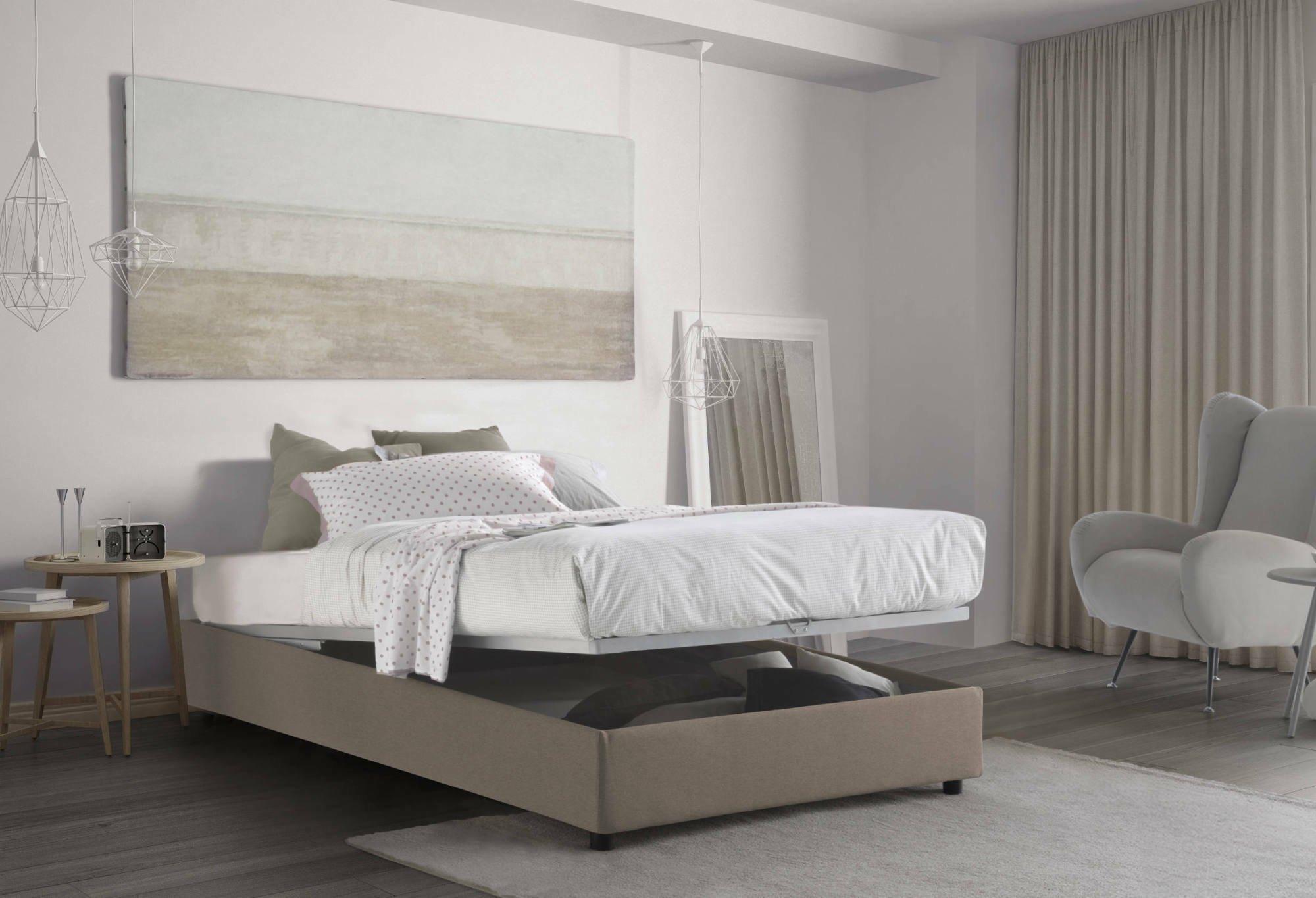 Dbamb tweepersoonsbed, Opbergbed met stoffen bekleding, 100% Made in Italy, Opening aan de voorkant, inclusief matras van 120x190 cm, Grijs