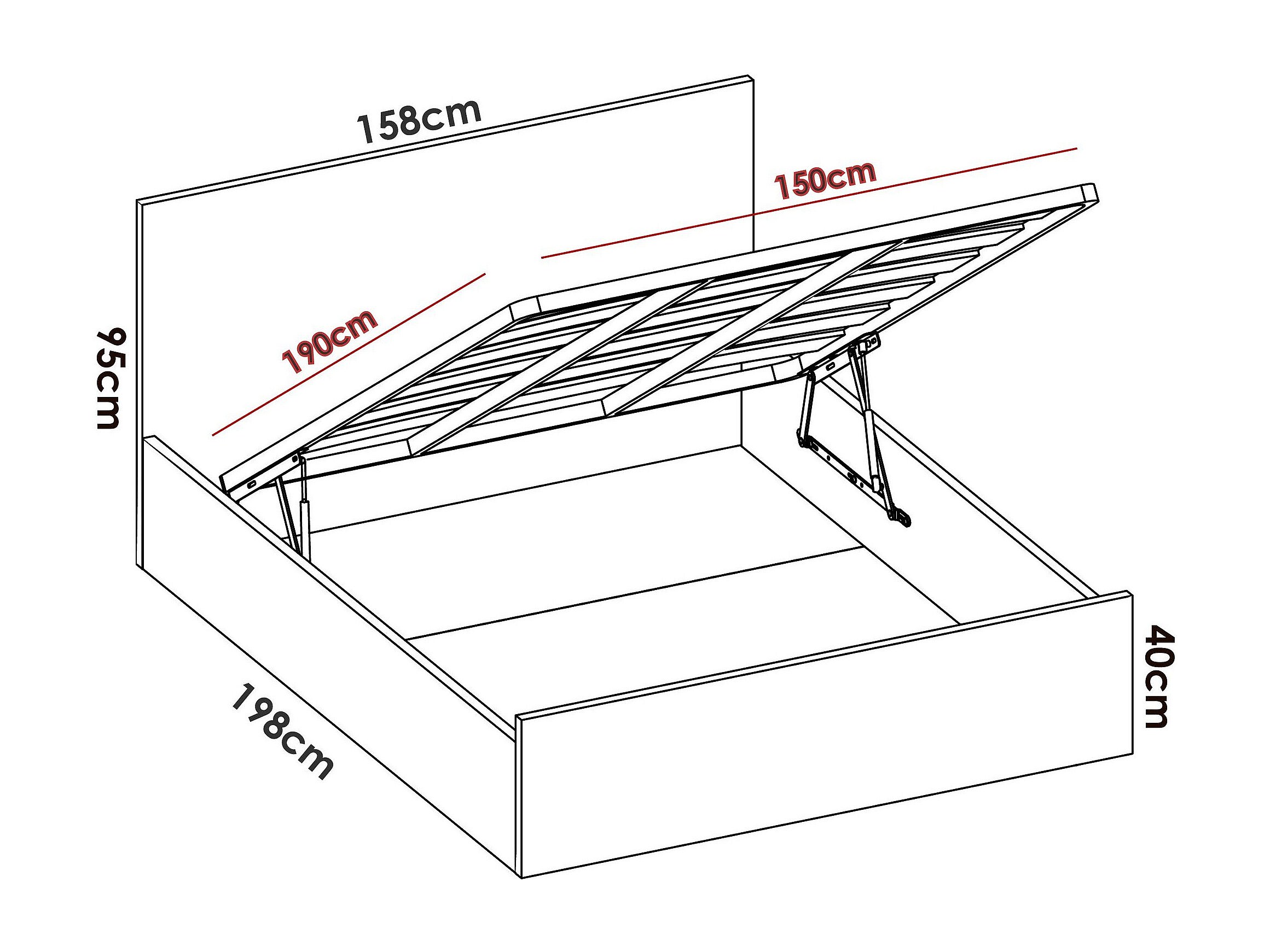 Dluli tweepersoonsbed, Inclusief Sommier bedframe, Opbergbedstructuur voor matras van 150x190 cm, 197x158h95 cm, Eiken