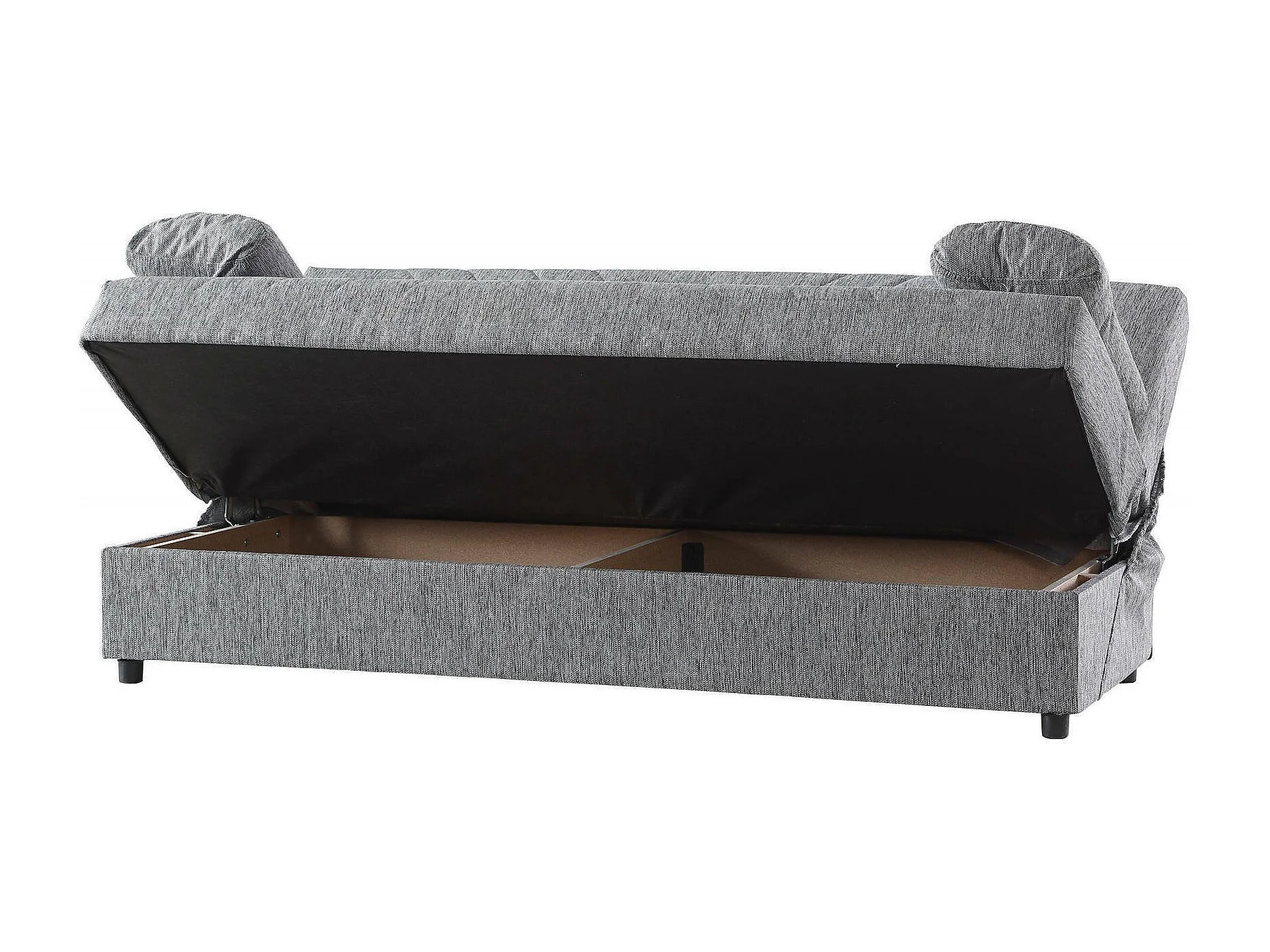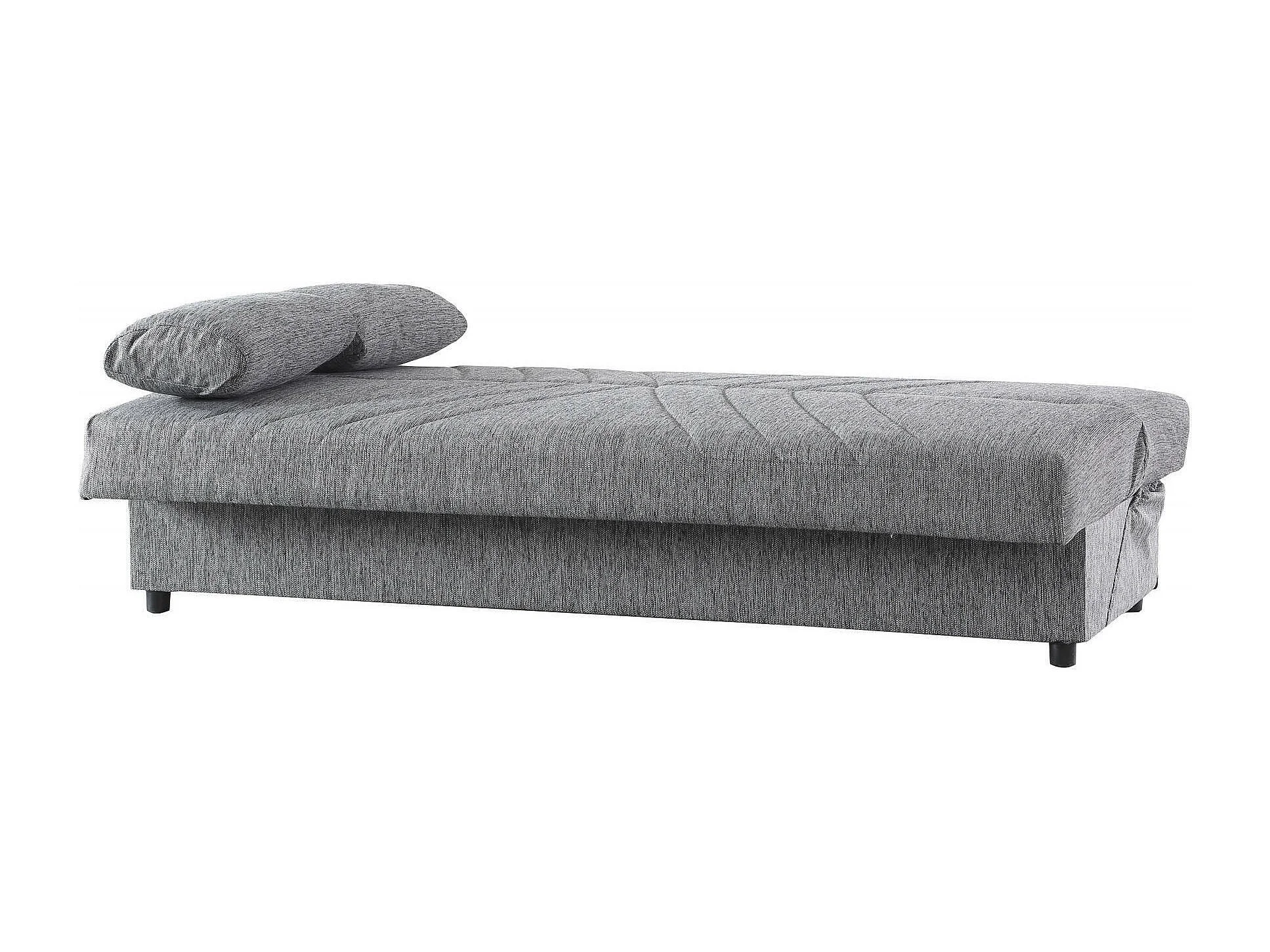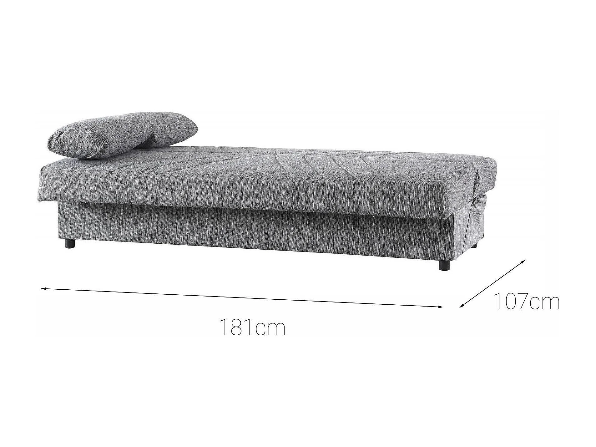 Dmalama slaapbank, 3-zits slaapbank met opbergruimte inclusief 2 kussens, Woonkamerbank in gewatteerde stof met klik-klik-opening, 181x81h88 cm, Grijs
