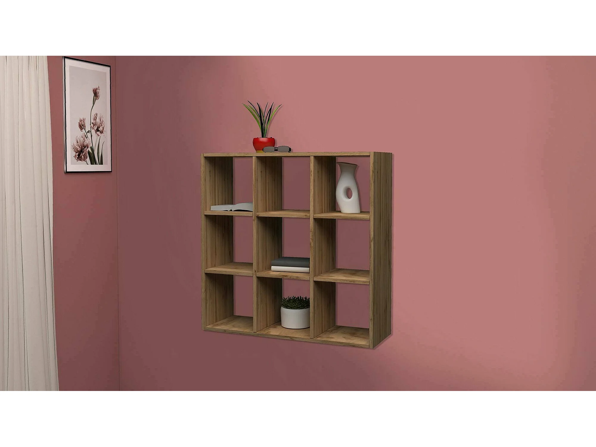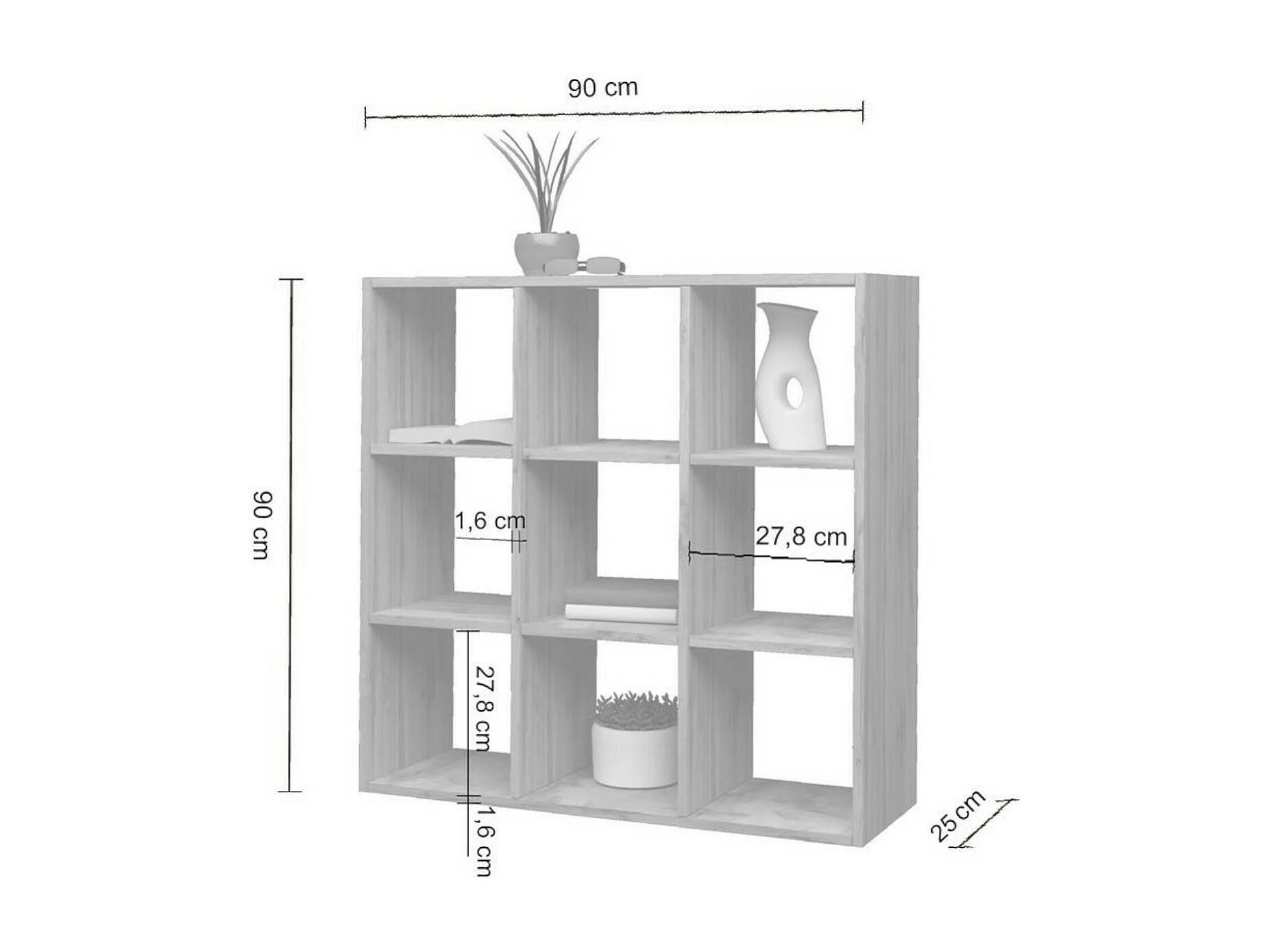 Dmanzar boekenkast, Kast met planken, Kantoorbibliotheek, 100% Made in Italy, Eikenhout, 90x25h90 cm