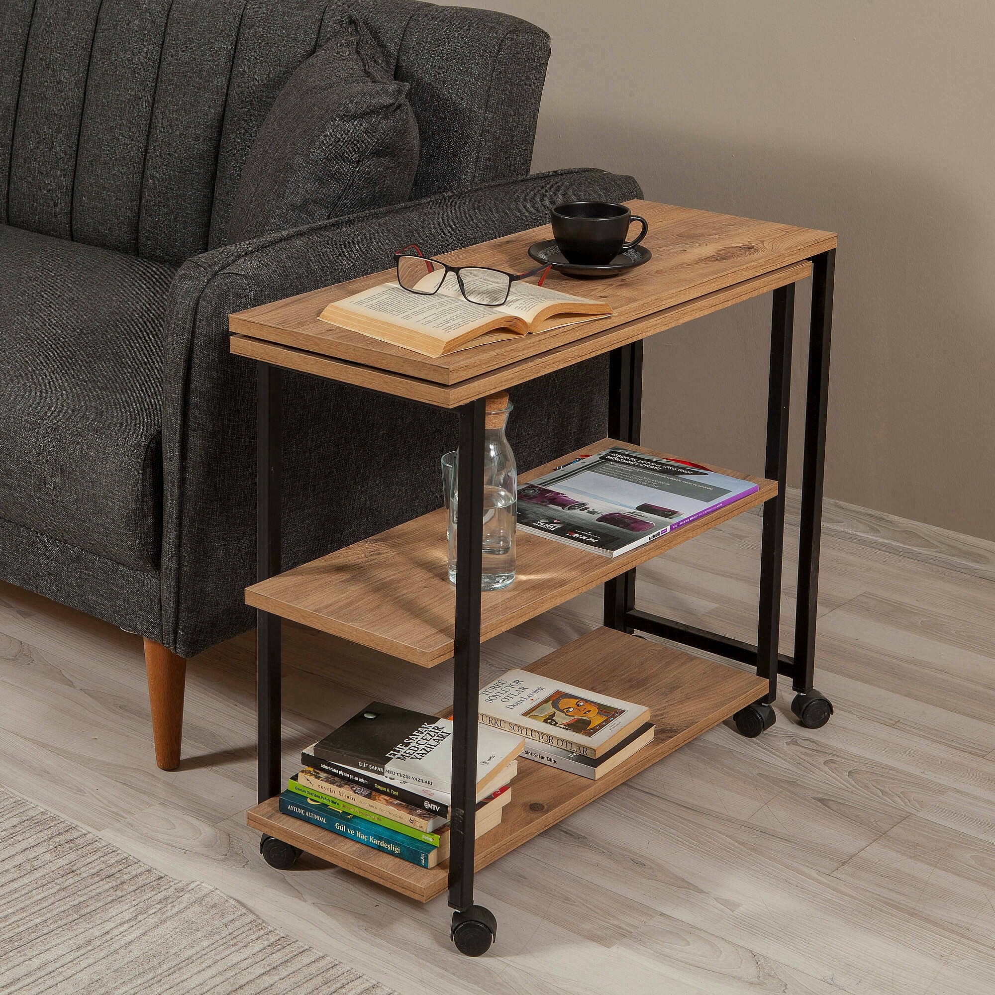 Dmarcodagrac salontafel, Lage salontafel, Tijdschriftenrek voor bank, Woonkamerplank, 70x76 h63 cm, Eiken en Zwart