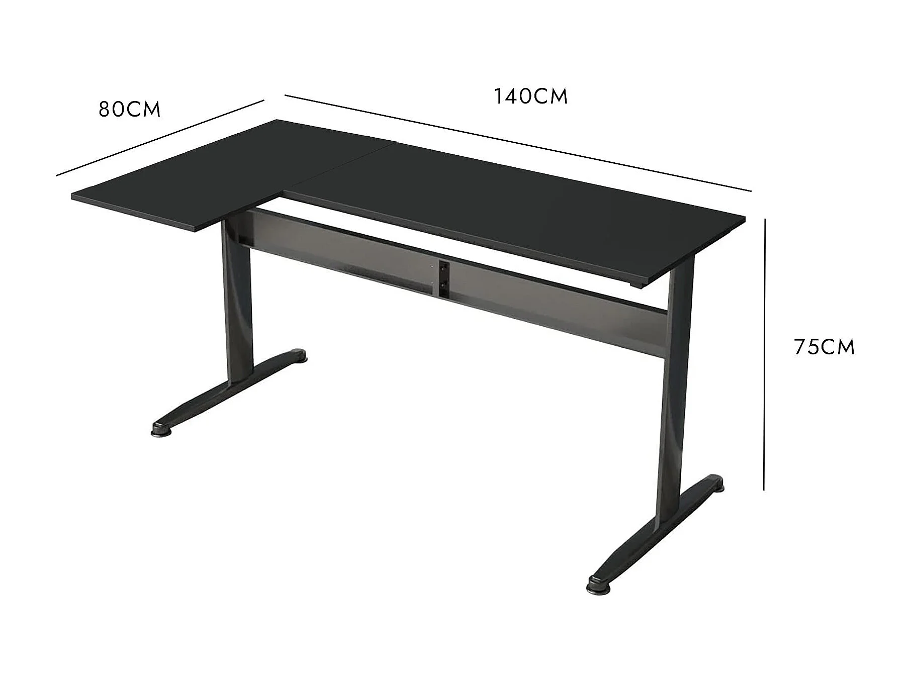 Dmarian bureau, Hoekbureau, Multifunctioneel bureau, Ruimtebesparende werktafel, 80x140h75 cm, Zwart