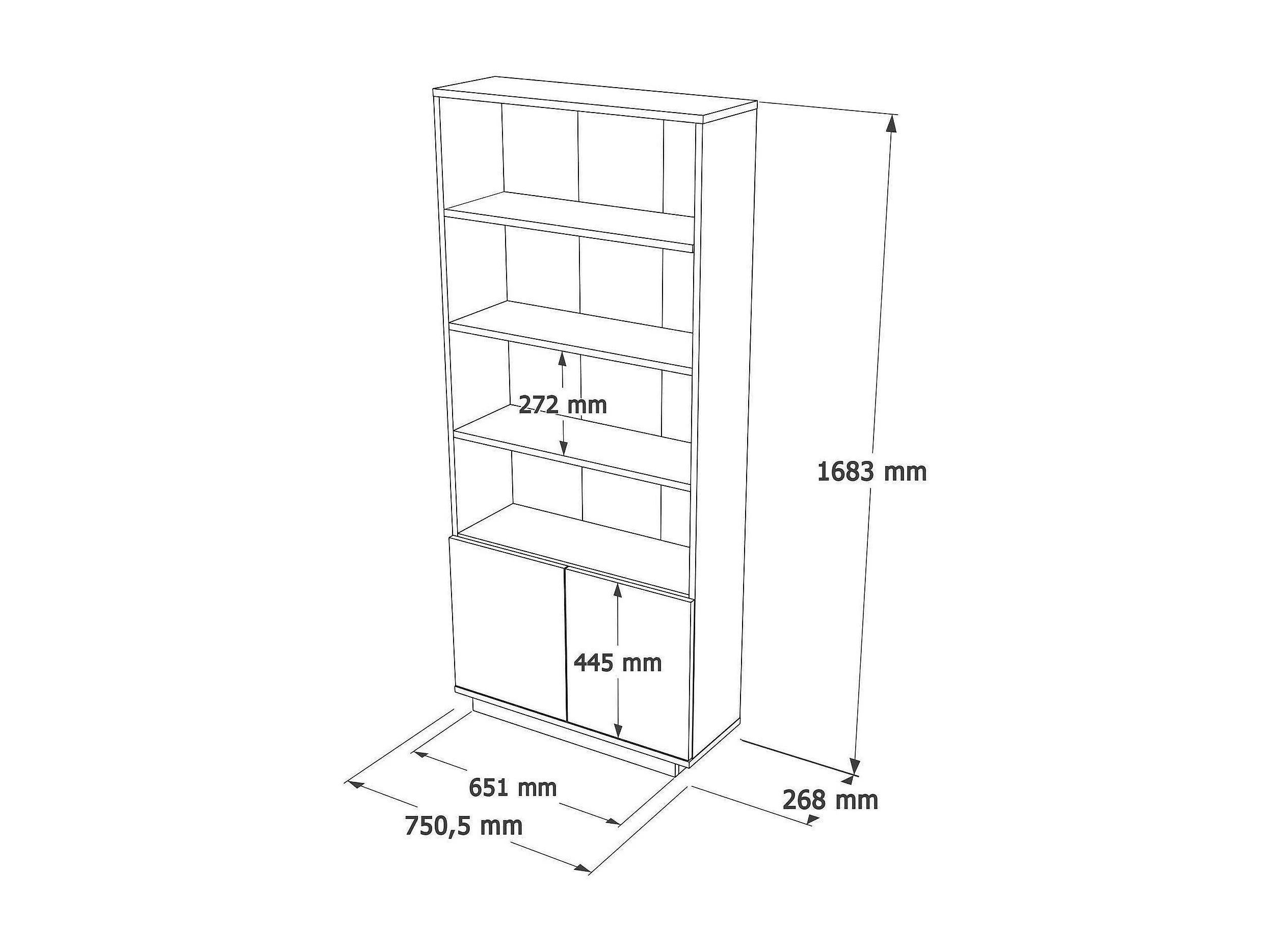 Dmartine Boekenkast, Kantoor Plank, Boekenkast, Bibliotheek, 75x27h168 cm, Eiken en Wit