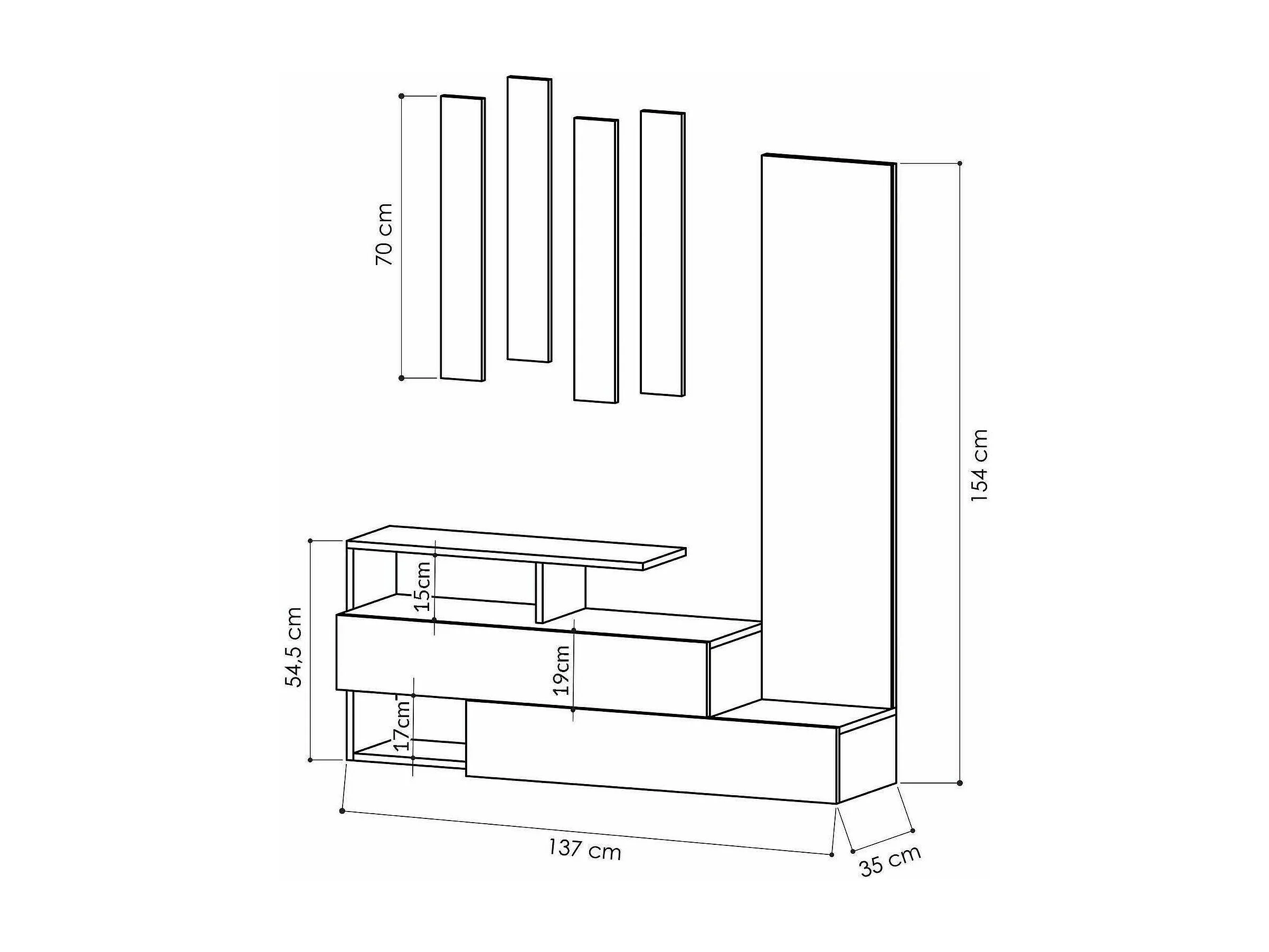 Dmartne-inkommeubel, inkomhanger, samenstelling voor atriumsO, Muptfunctionele opstelhouder, 137x35h55 cm, Wit en Eiken