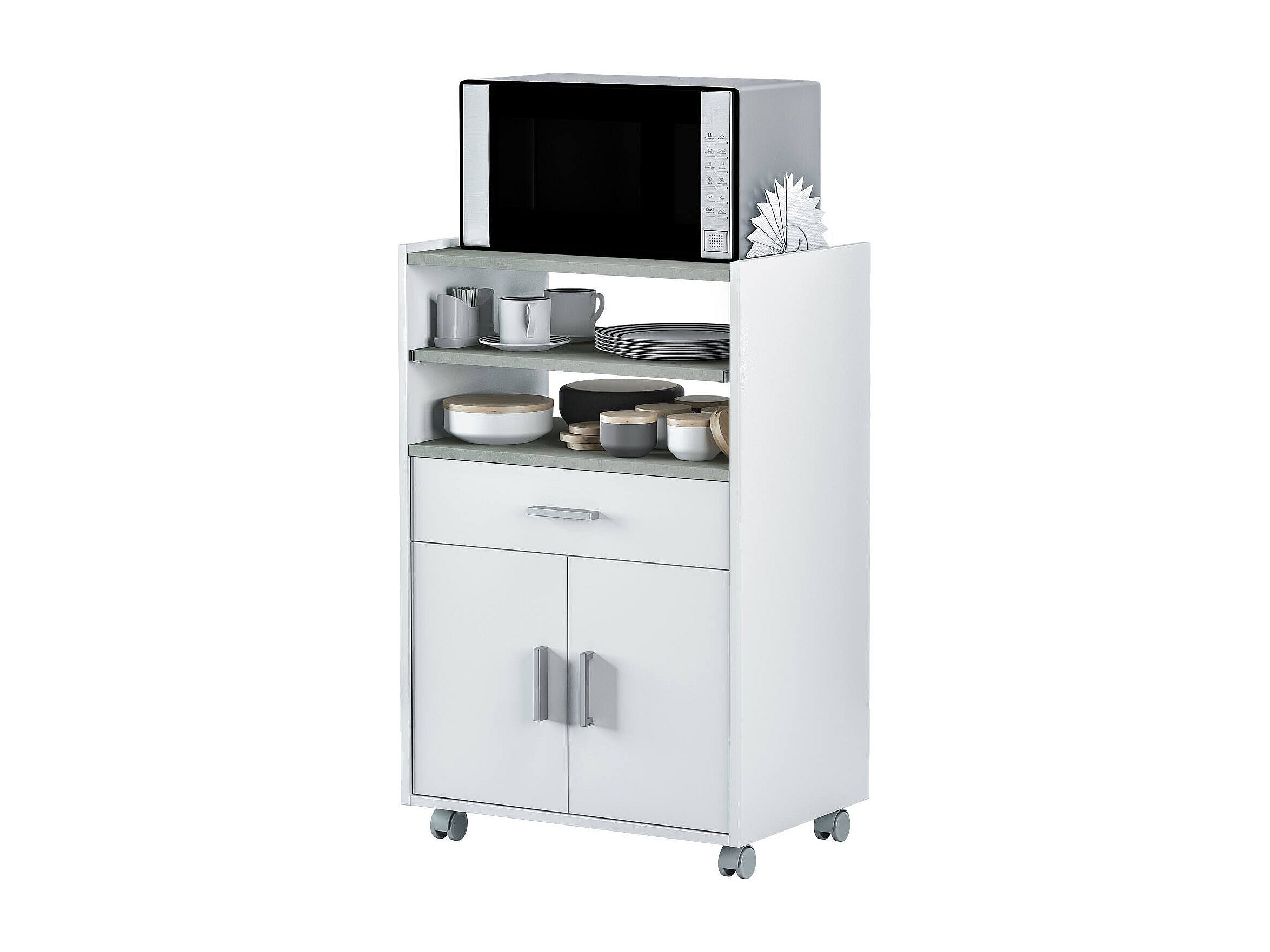 Dmatte trolley, Extra keukenkast op wielen, Multifunctionele kledingkast met 2 deuren en 1 plank, 59x40h92 cm, Wit