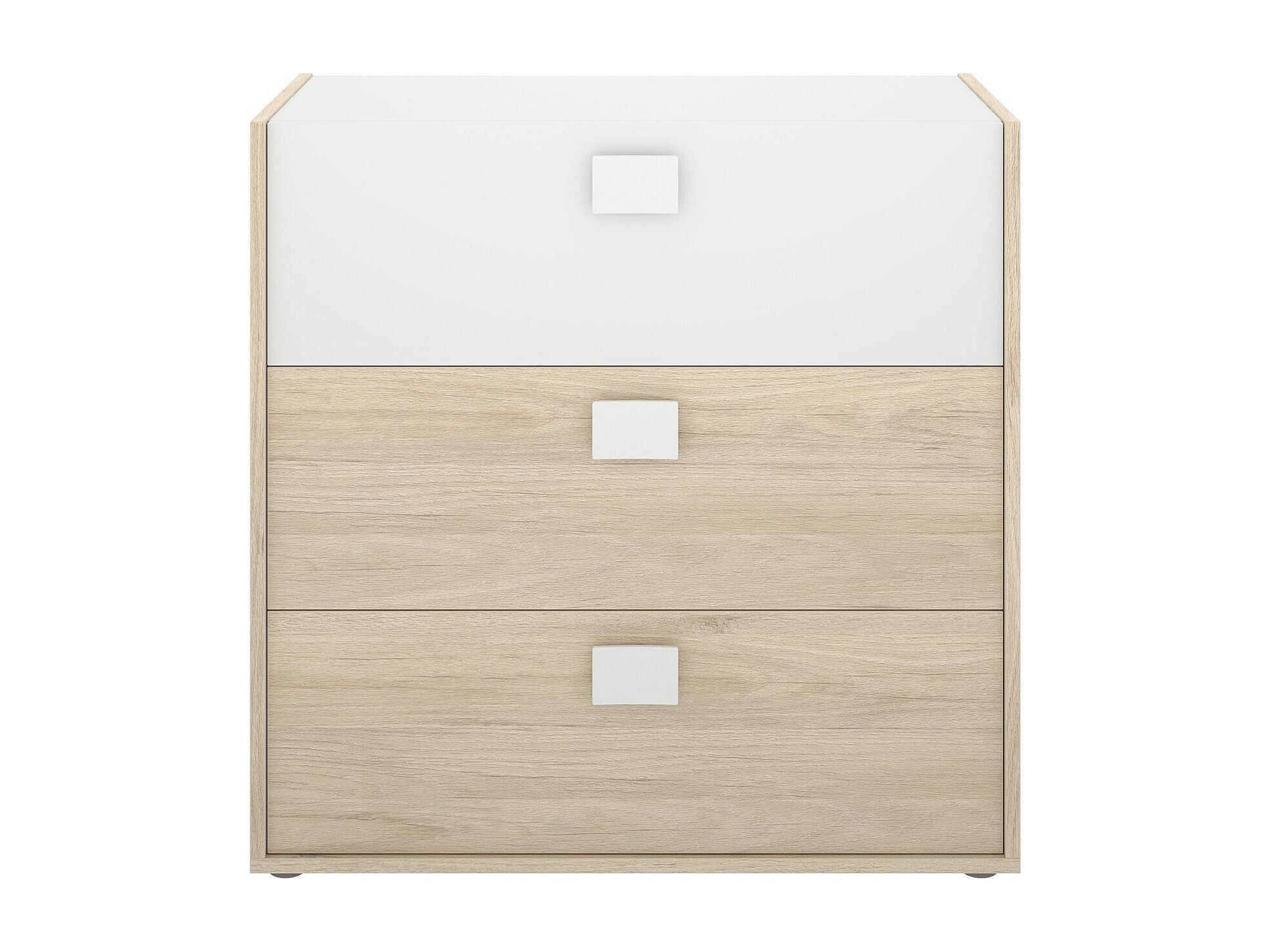 Dmbay ladekast, Slaapkamerladekast, Dressoir met 3 laden, 80x43h81 cm, Eiken en Wit