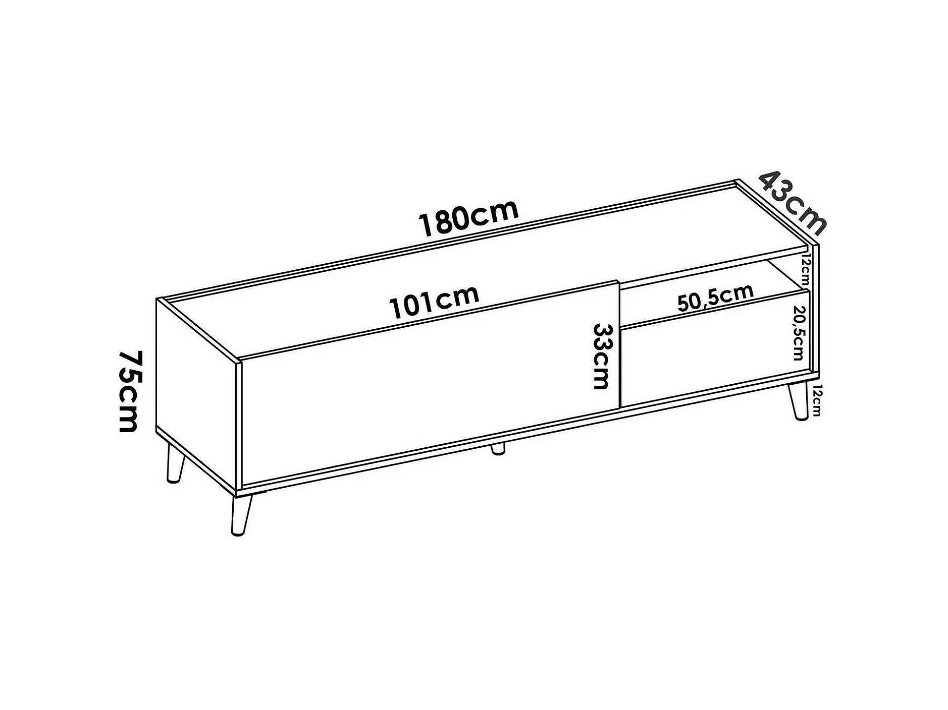 Dmill TV-meubel, Laag woonkamerdressoir, Woonkamerdressoir voor televisie, 155x43h47 cm, Eiken en wit