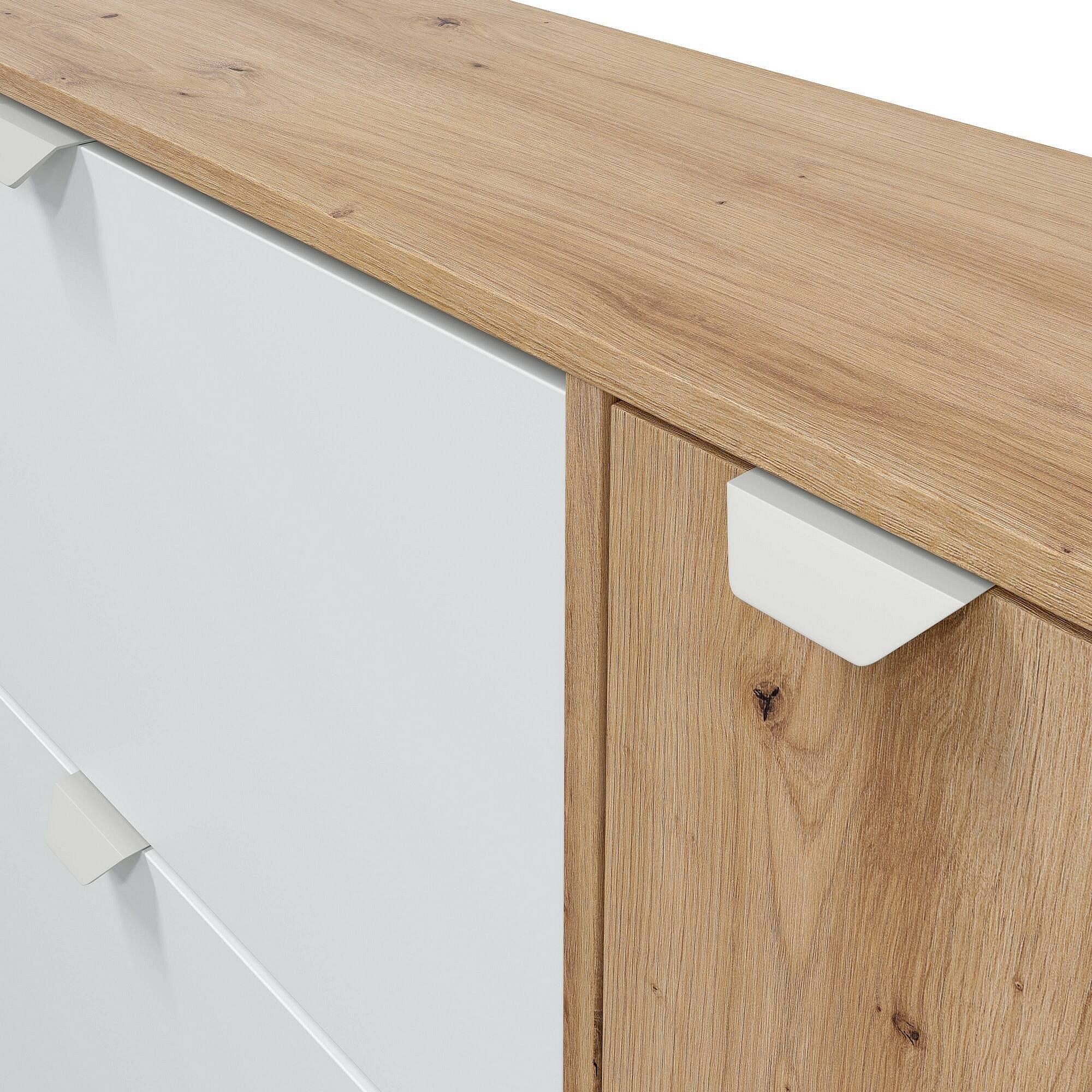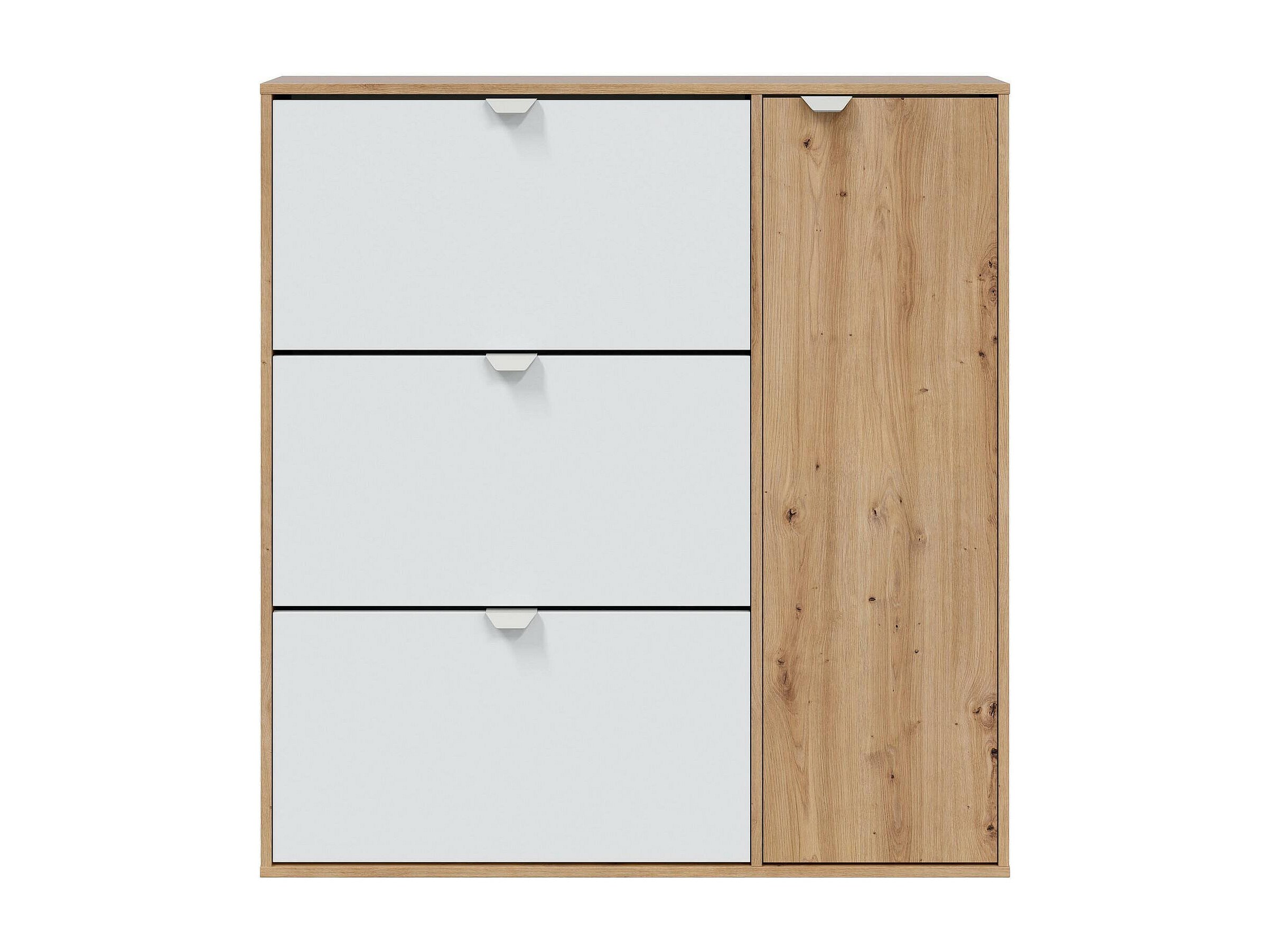 Dmodic schoenenrek, entree schoenenrek met 4 deuren, ruimtebesparende schoenenkast, 105x24h112 cm, Wit en Eiken