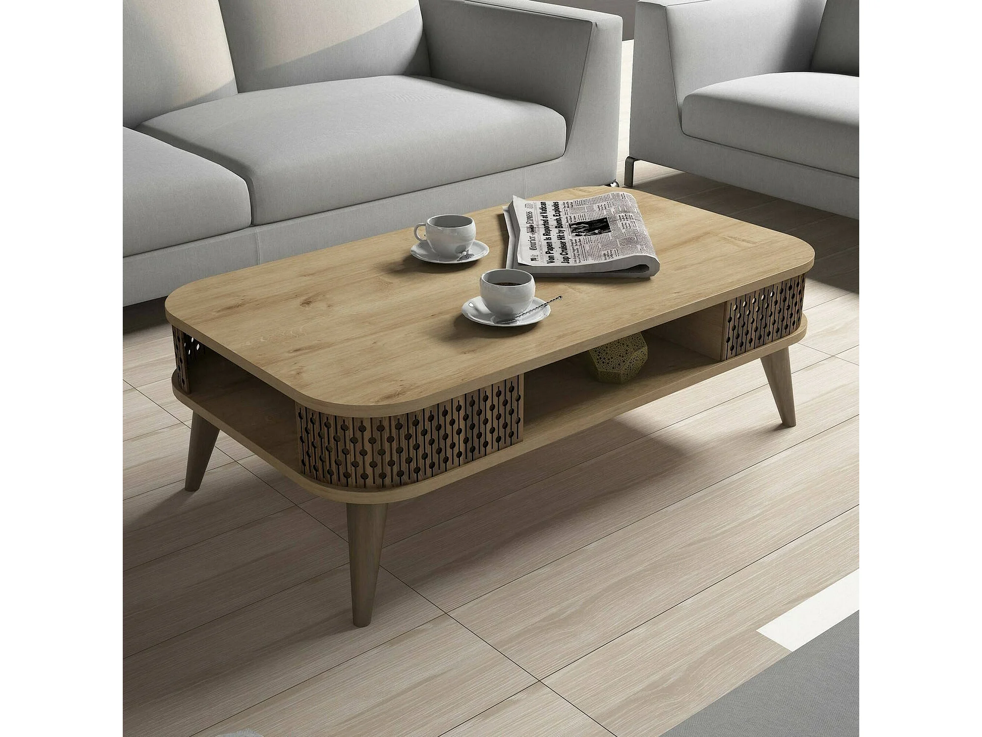 Dmoll-salletafel, koffietafel, bankrek, woonkamerplank, 105x60h35 cm, Eik
