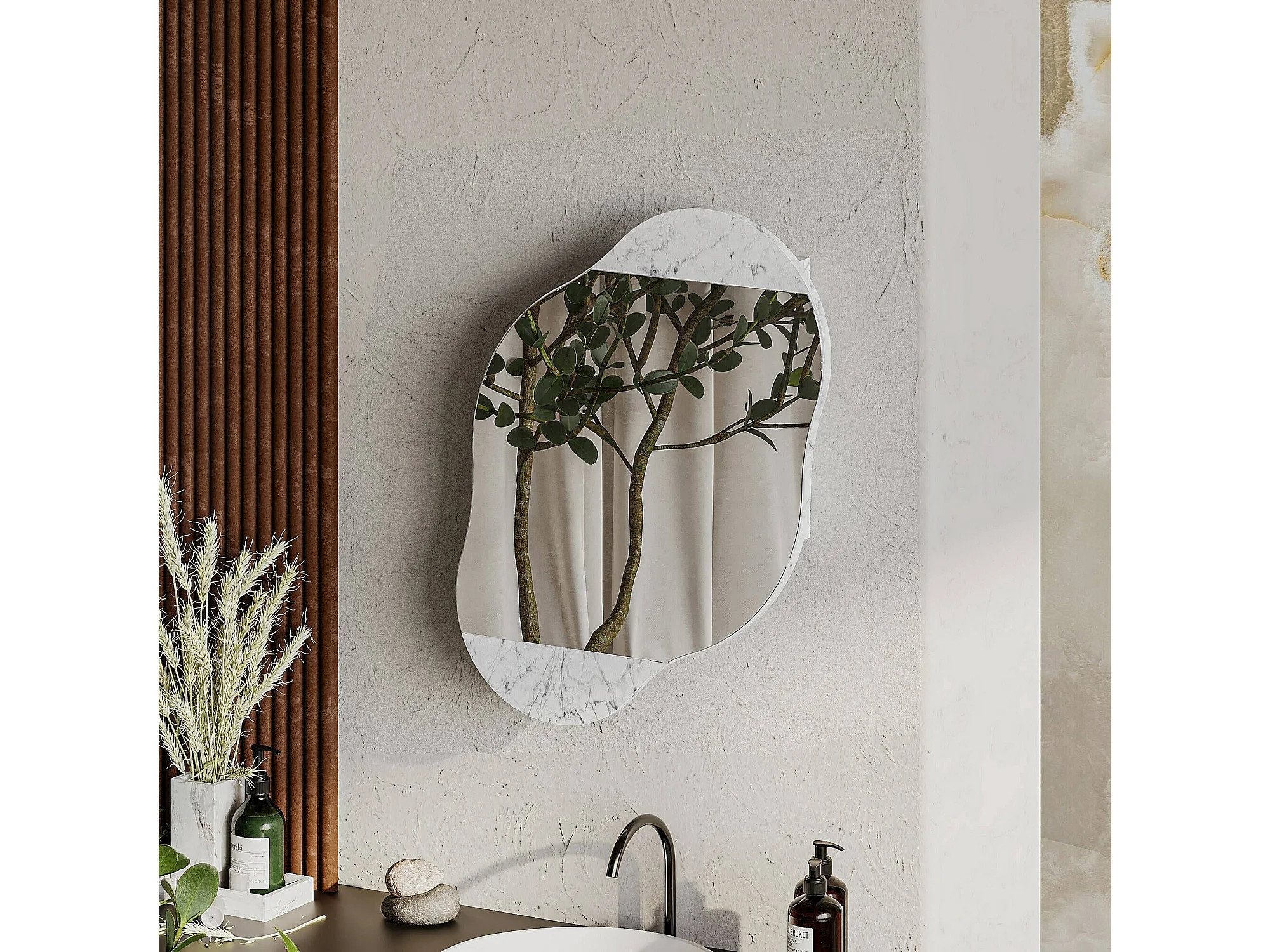 Wandspiegel MCW-L86, marmer look wit