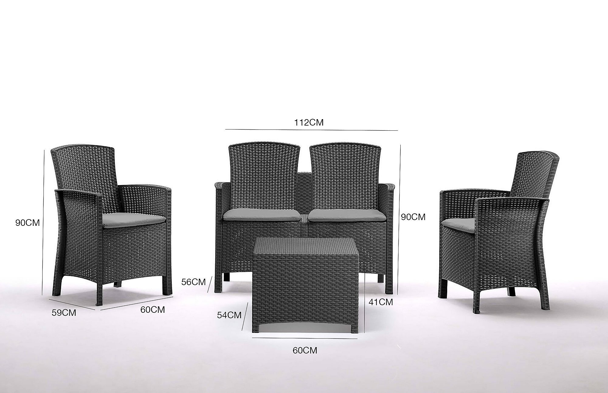 Dbagnolin buitenloungeset, Tuinset met 2 fauteuils, 1 bank en 1 salontafel, Rotan effect met kussens, 100% Made in Italy, Antraciet