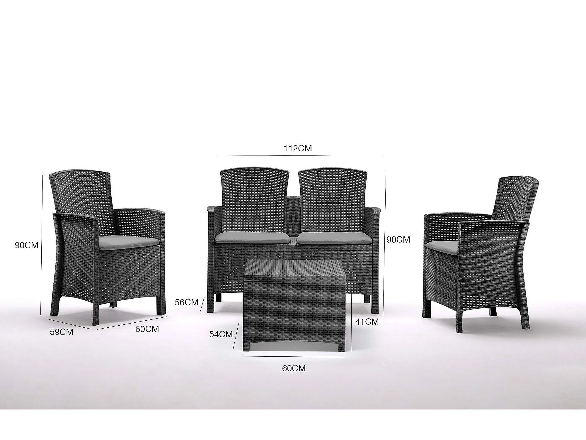 Dmorat outdoor loungeset, Tuinset met kussens, Rotan effect loungeset voor binnen en buiten, 100% Made in Italy, Antraciet