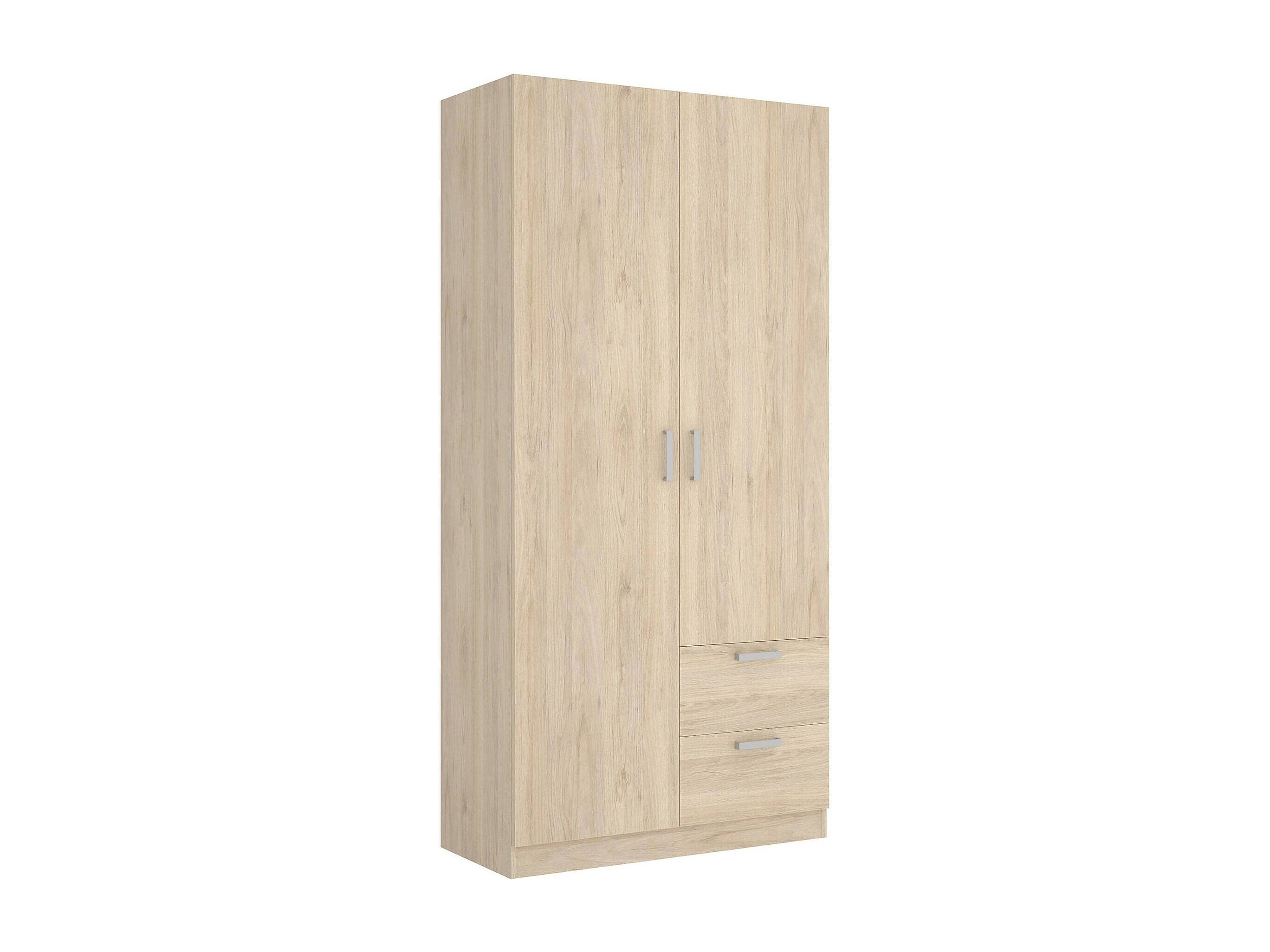 STRUCTUUR EN GEBRUIK - Kledingkast compleet met twee draaideuren, twee laden, drie interne vakken en een kleerhangerstang - Bedankt voor de De interne organisatie van de ruimtes biedt voldoende opbergruimte - De gehele structuur van het meubilair is perfect voor het ruimtebesparend inrichten van een tweepersoonsslaapkamer, een kinderkamer of een logeerkamer - Dankzij de interne planken in combinatie met de kleerhangerstang kunt u om kleding en kleding op een ordelijke manier op te bergen.