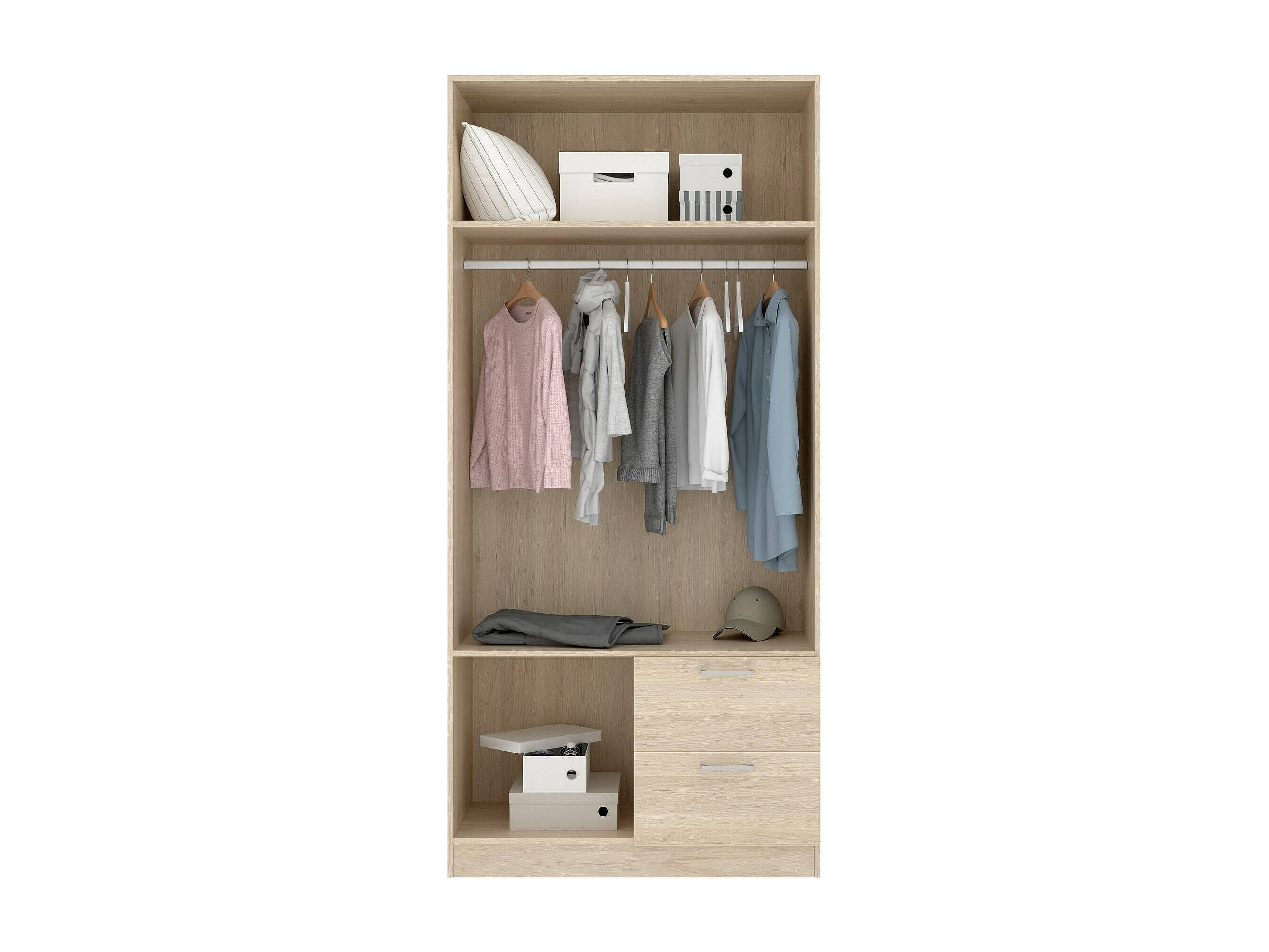 GARDEROBE - Kledinghanger voor slaapkamer, Kledingkast met 2 draaideuren en 2 laden, 100x52h215 cm, Eiken.