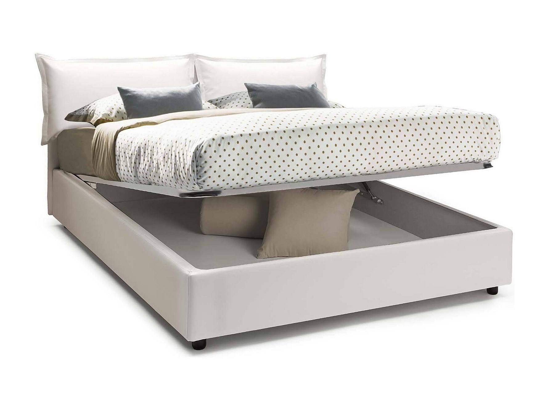 Dbohine tweepersoonsbed, Opbergbed met eco-lederen bekleding, 100% Made in Italy, Opening aan de voorzijde, geschikt voor matras 160x190 cm, Wit
