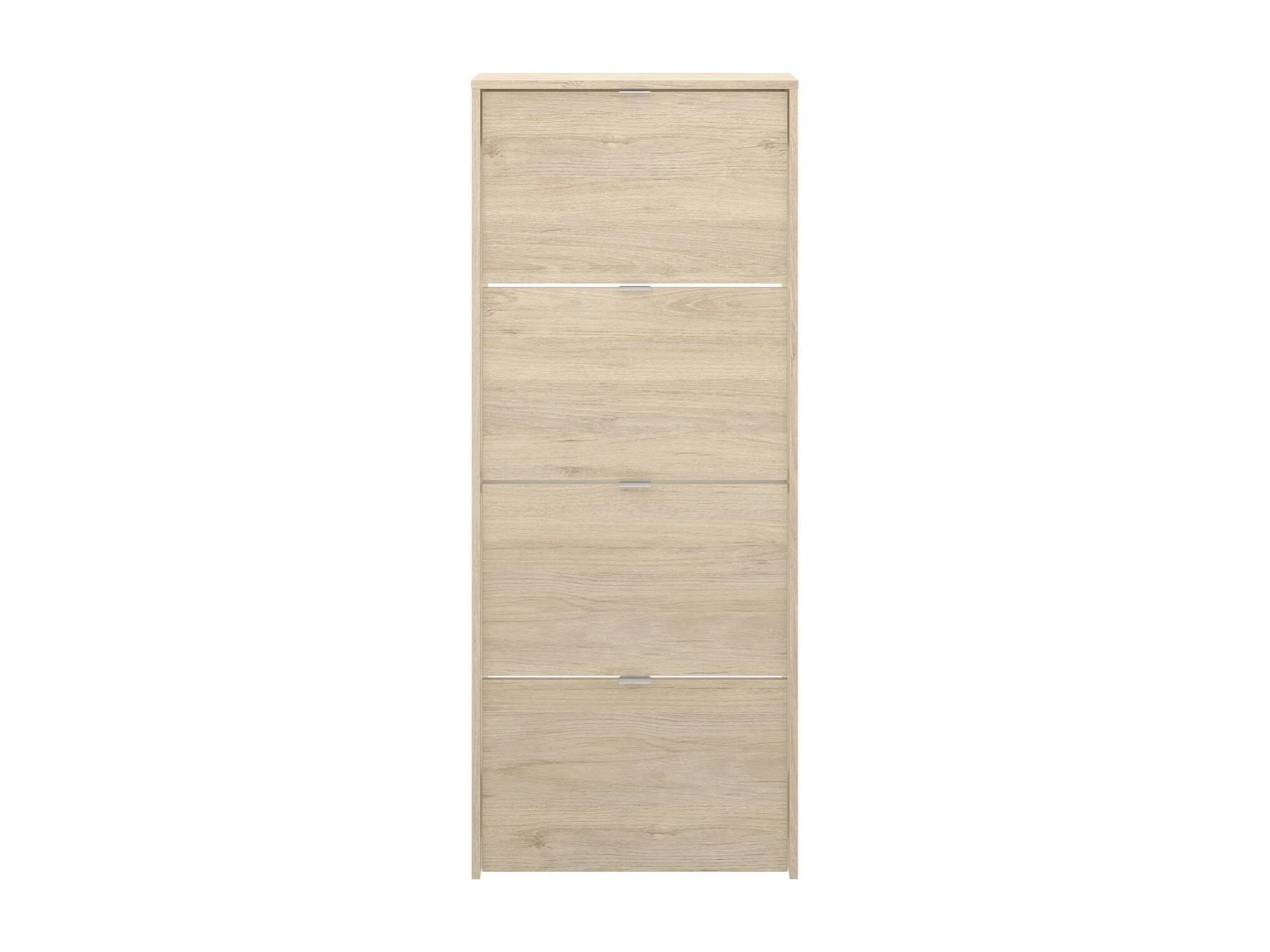 Dmurie schoenenrek, Ruimtebesparend entree schoenenrek, Schoenenkast met 4 vouwdeuren, 61x25h149 cm, Eiken