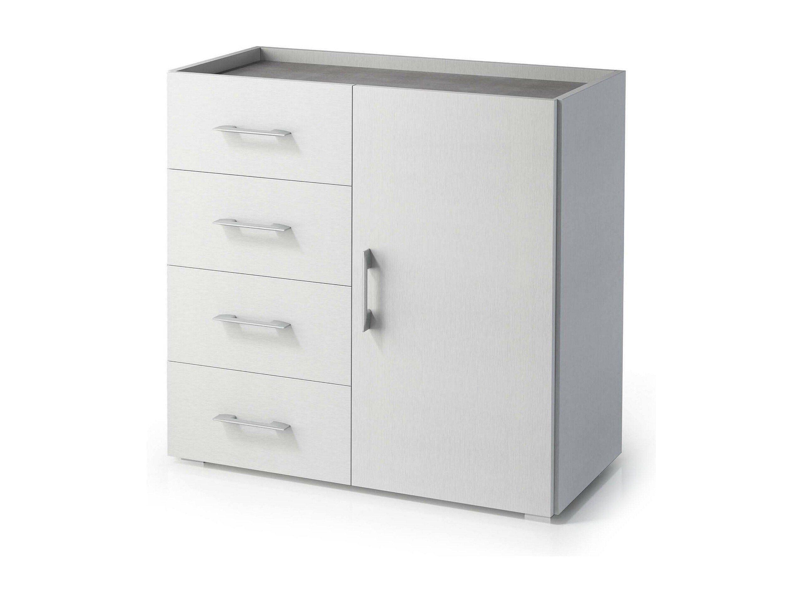 Dnag dressoir, Buffetkast met 1 deur en 4 laden, Woonkamerdressoir, Multifunctionele kast met planken, 100% Made in Italy, 90x41h87 cm, Wit