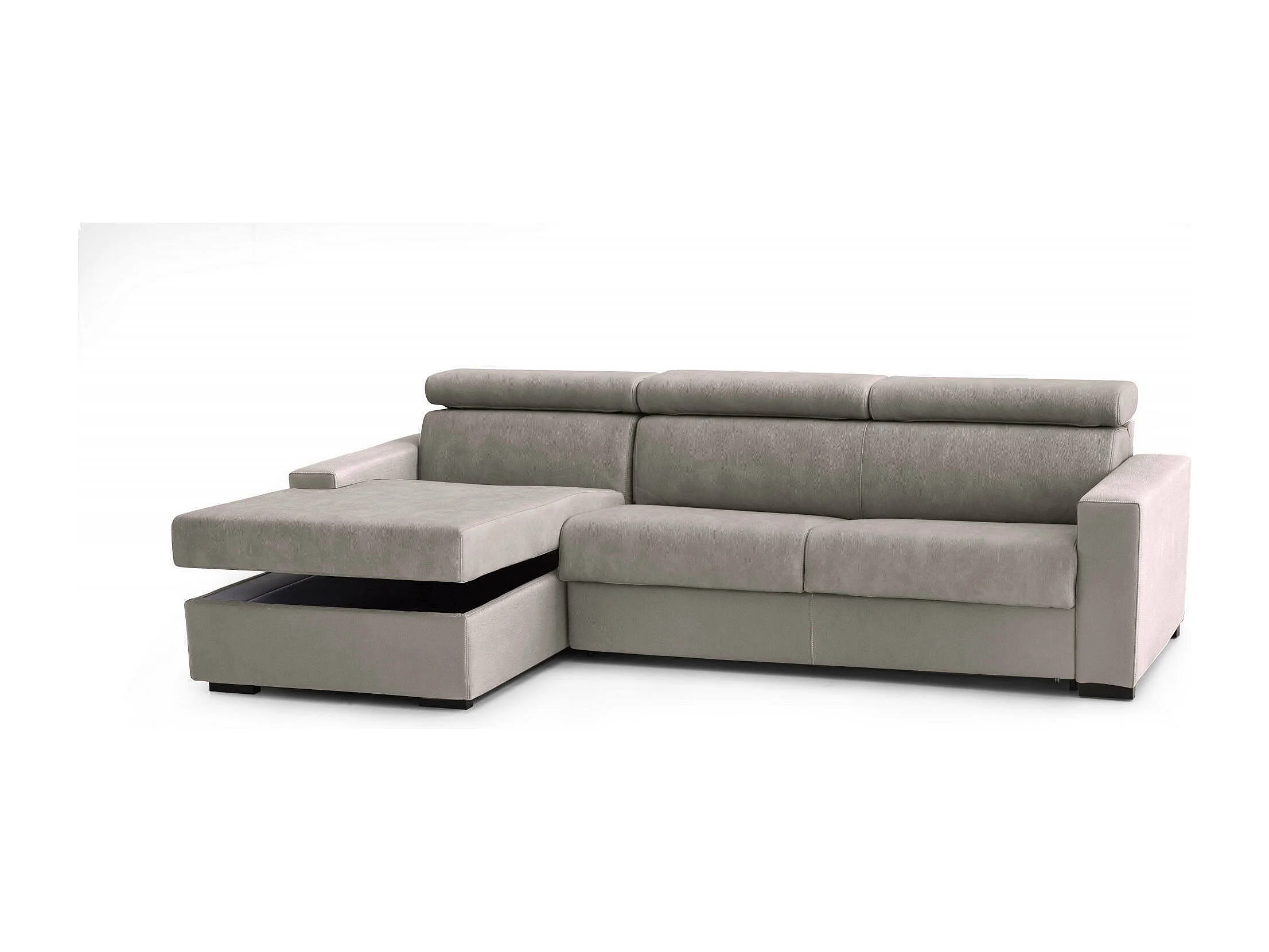 Divano fisso con penisola in tessuto tortora 280x95h85 cm