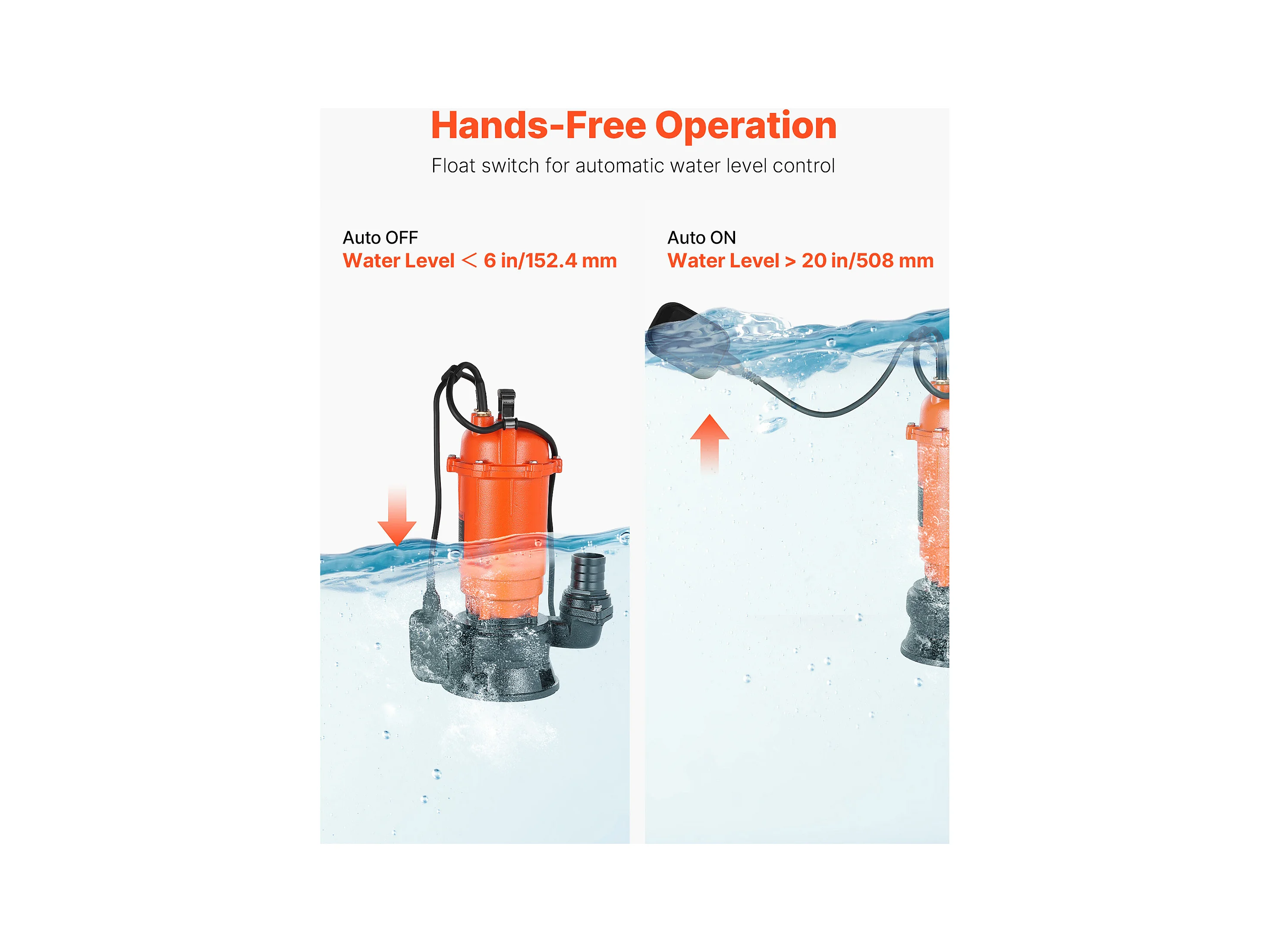 Dompelpomp voor Afvalwater SucceBuy 1500 W Dompelpomp Gietijzer 22800 L/u met Automatische Zwevenschakelaar, Opvoerhoogte 18 m, voor Zwembaden