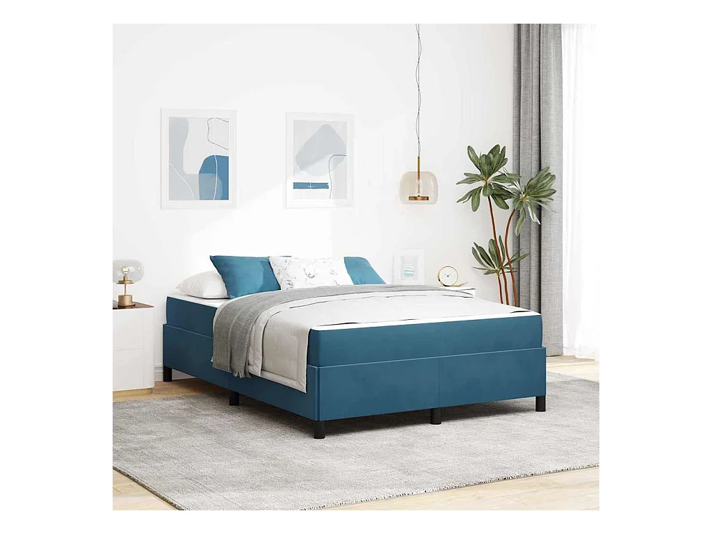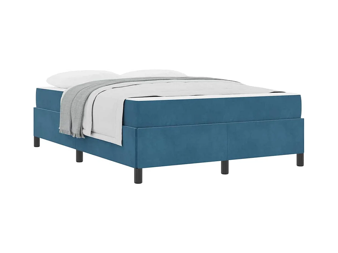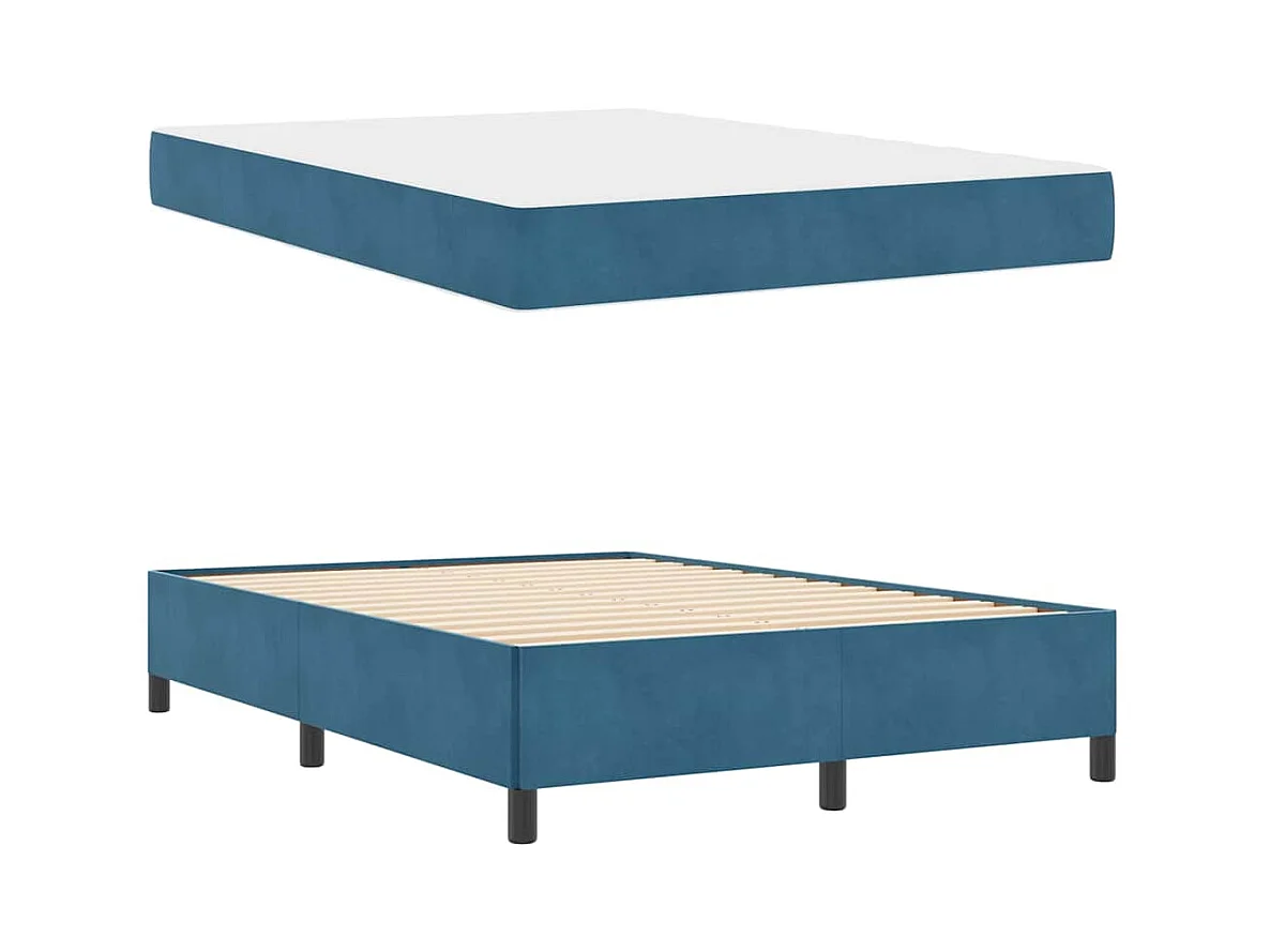 Donkerblauw en wit bedframe 140 x 190 cm fluweel