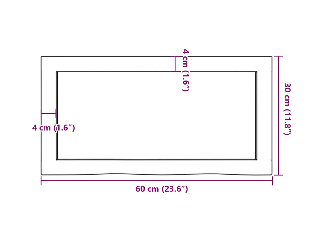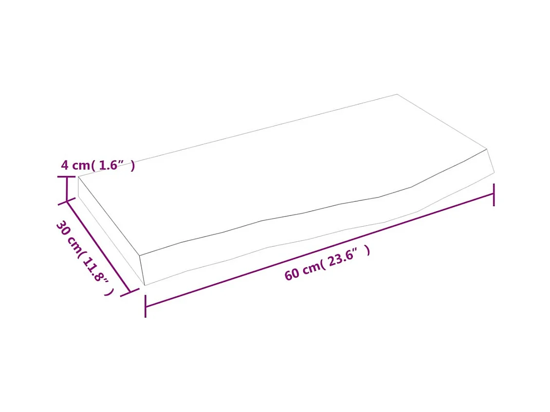 Donkerbruine wandplank 60x30x2 cm massief behandeld eikenhout