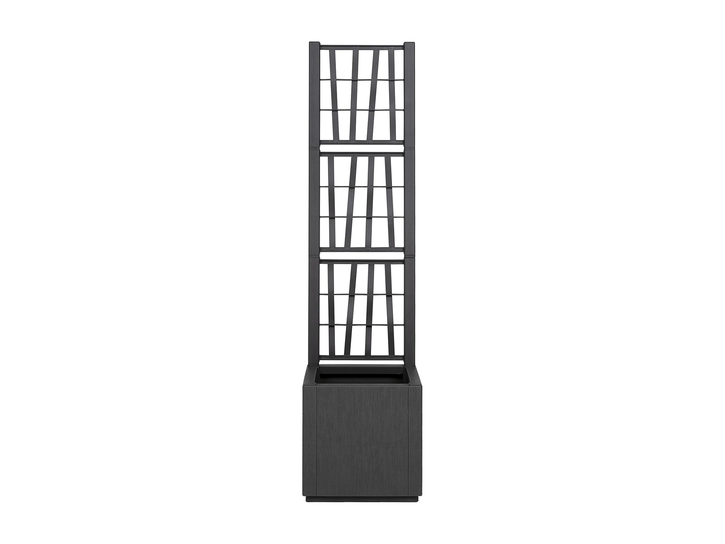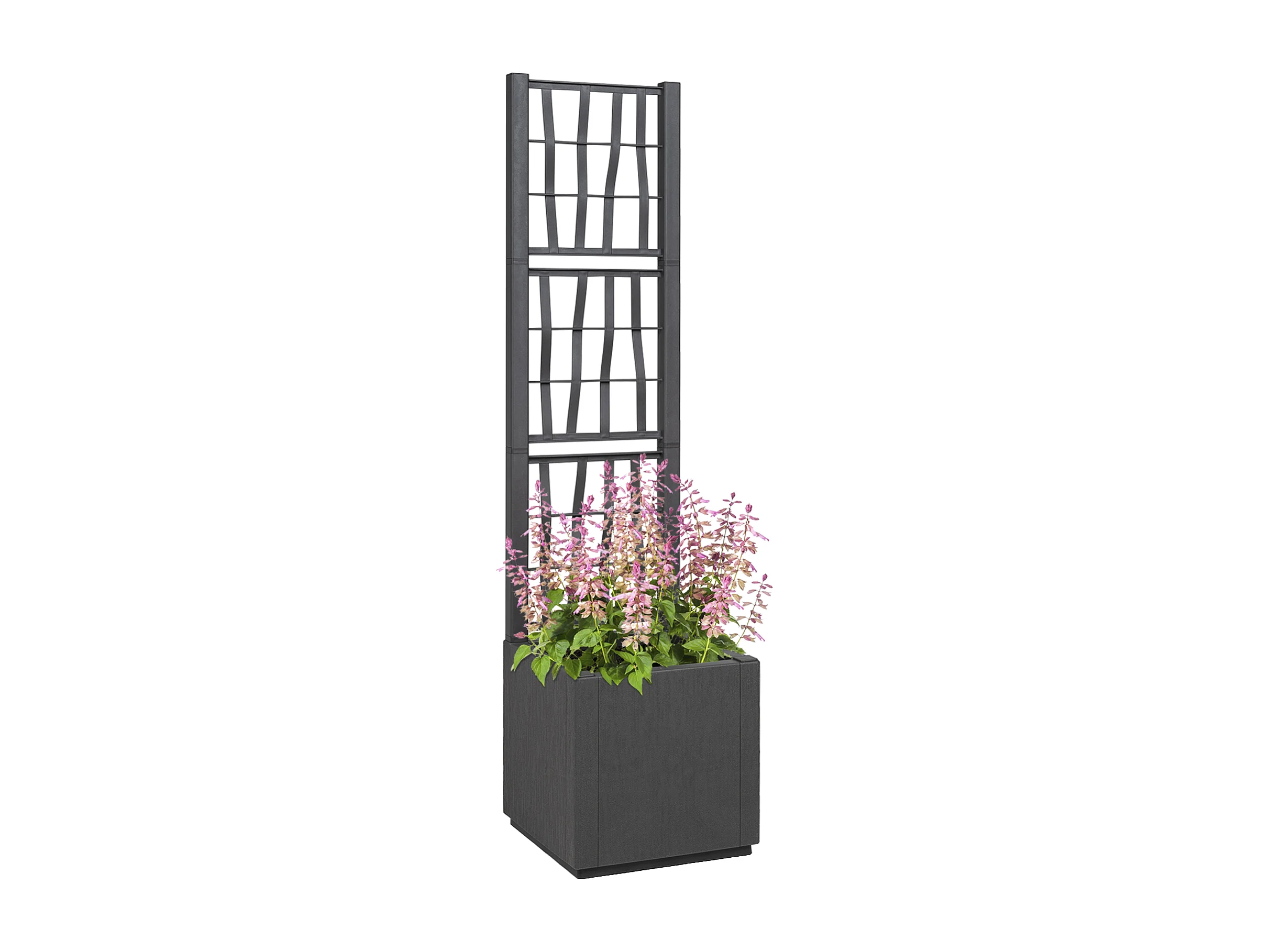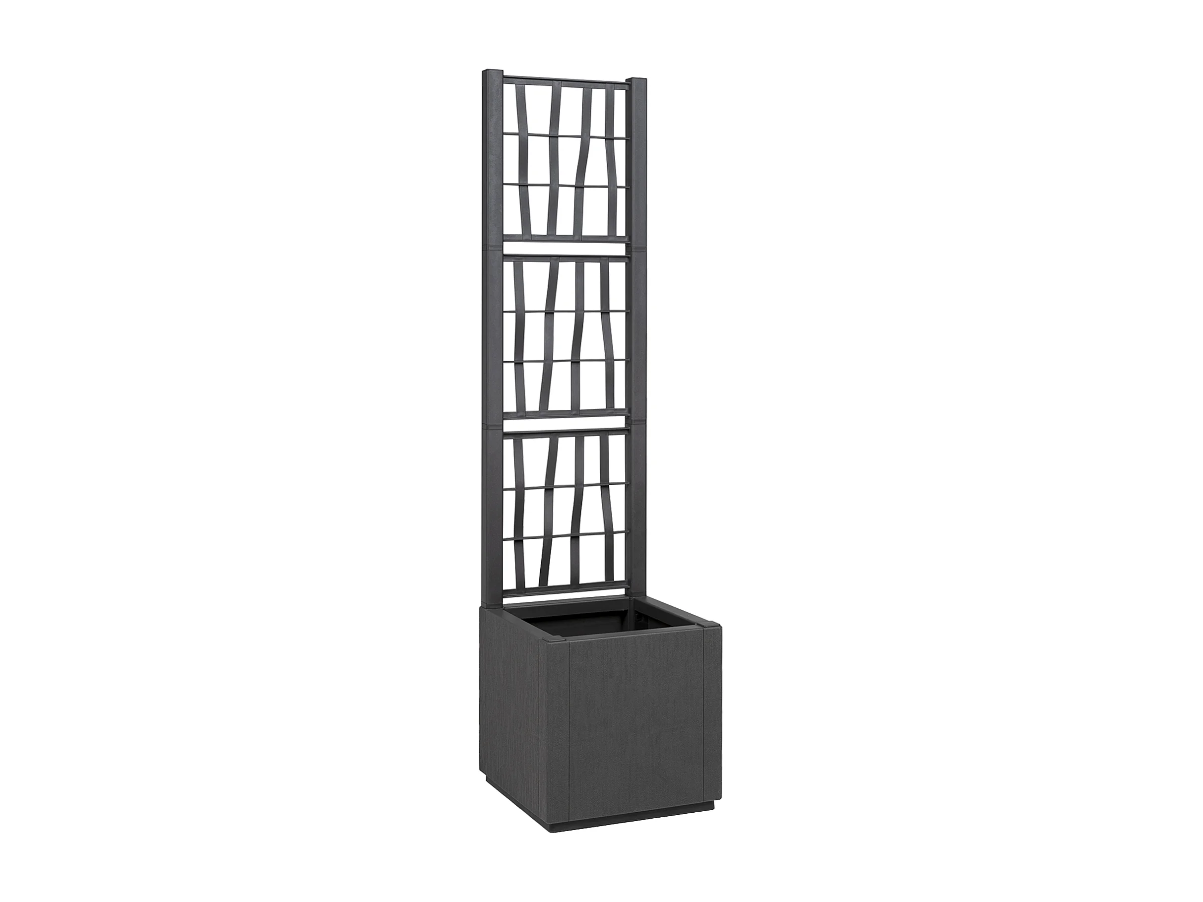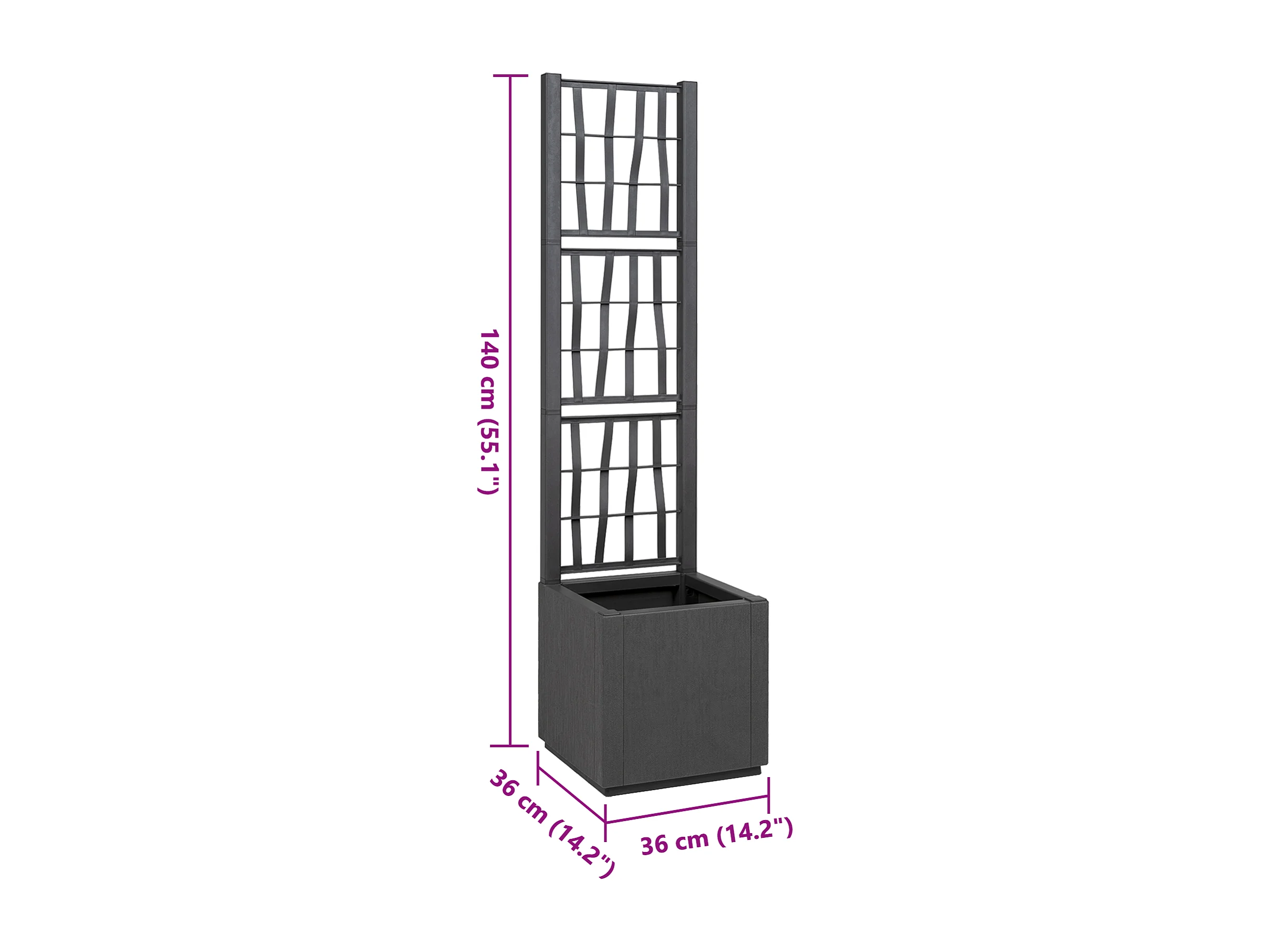 Donkergrijze tuinpot met trellis - 36x36x140 cm