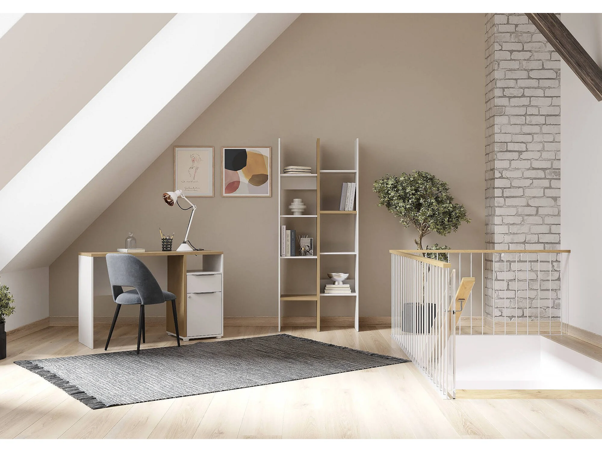 Donomach boekenkast, Kantoorplank, Boekenkast, Bibliotheek, 76x33 h183 cm, Eiken en Wit