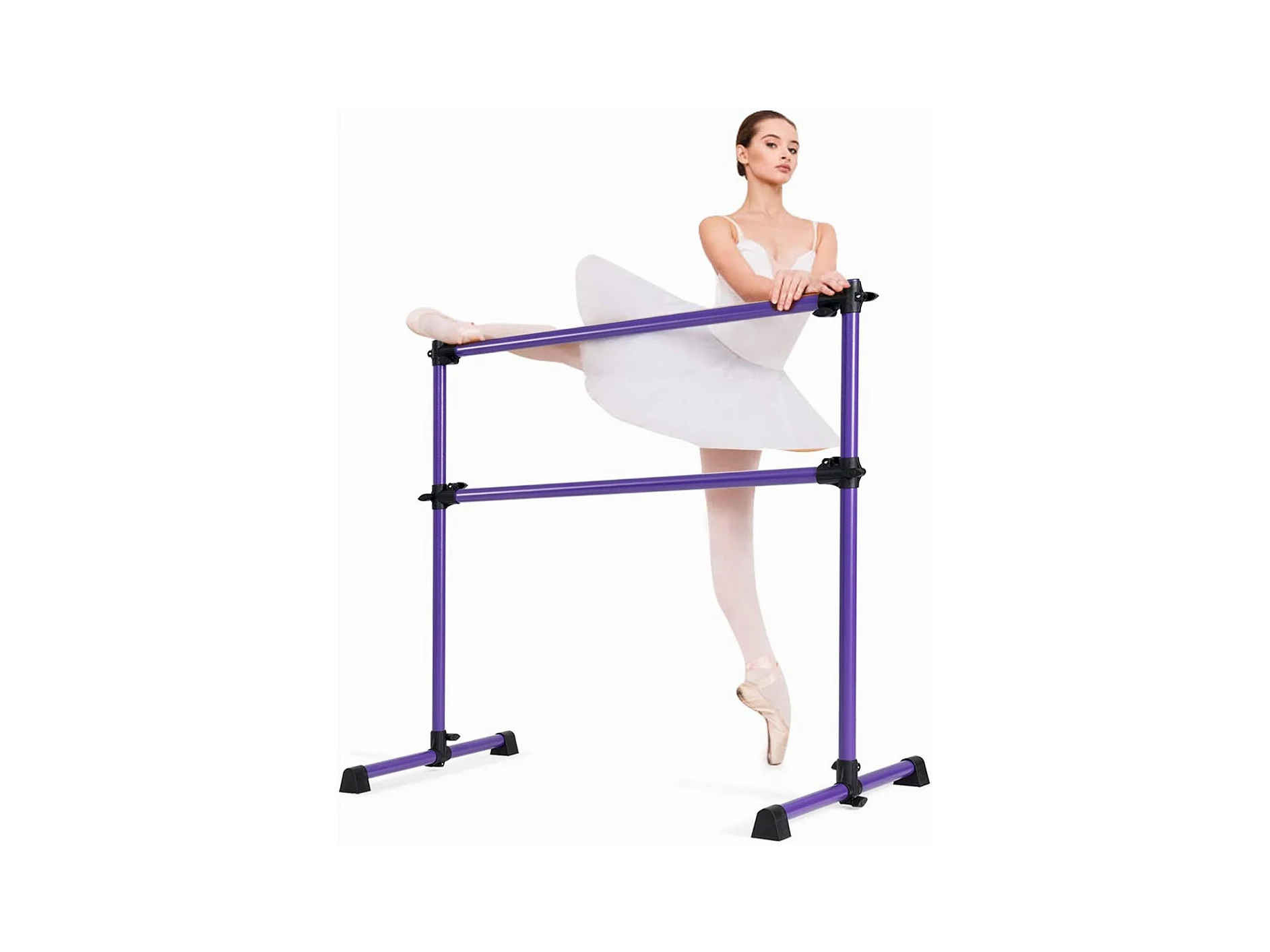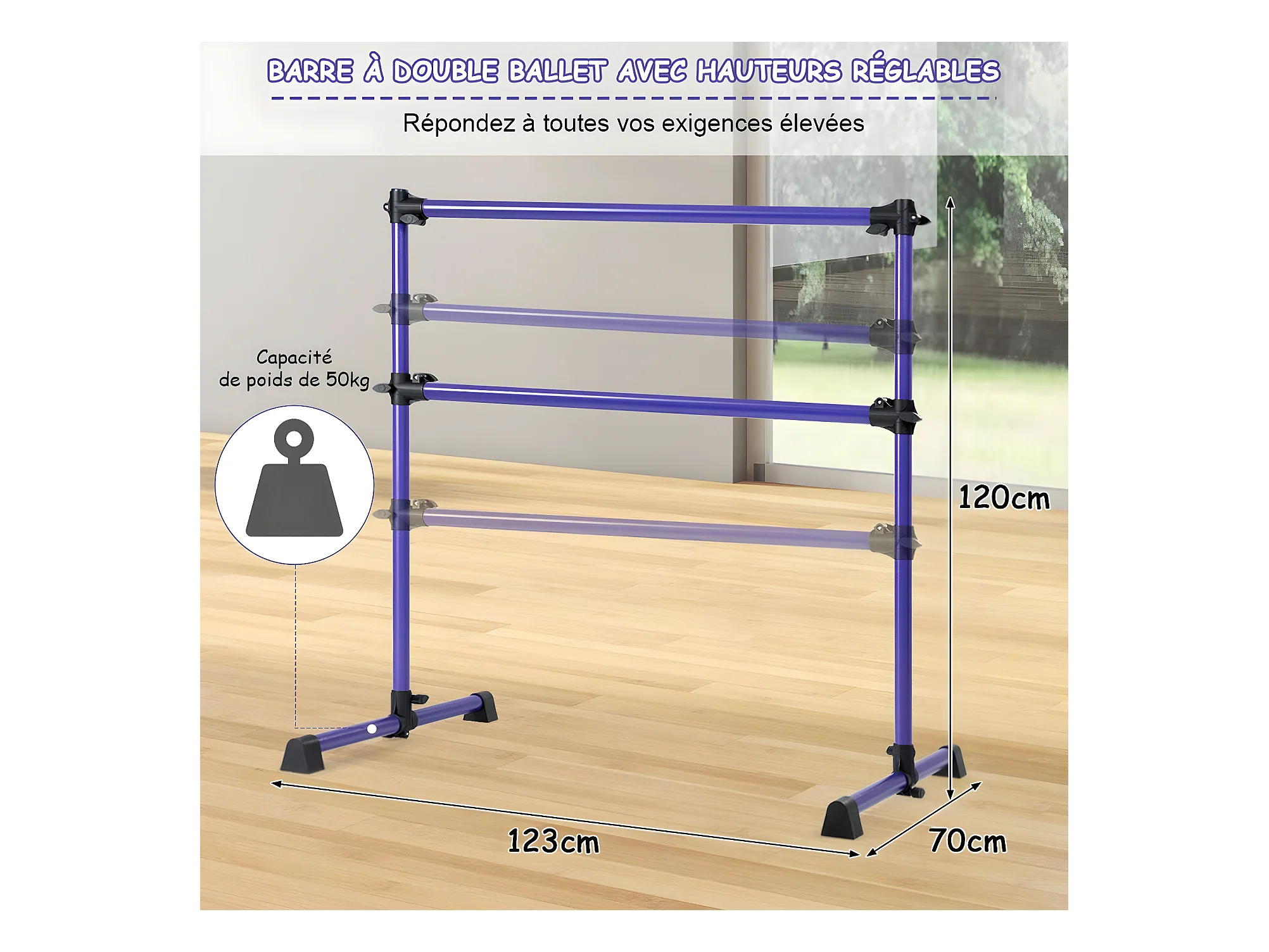 Double Barre de Danse Classique Hauteur Réglable 20-119CM avec Eponge Base Rotative Charge Max 50KG