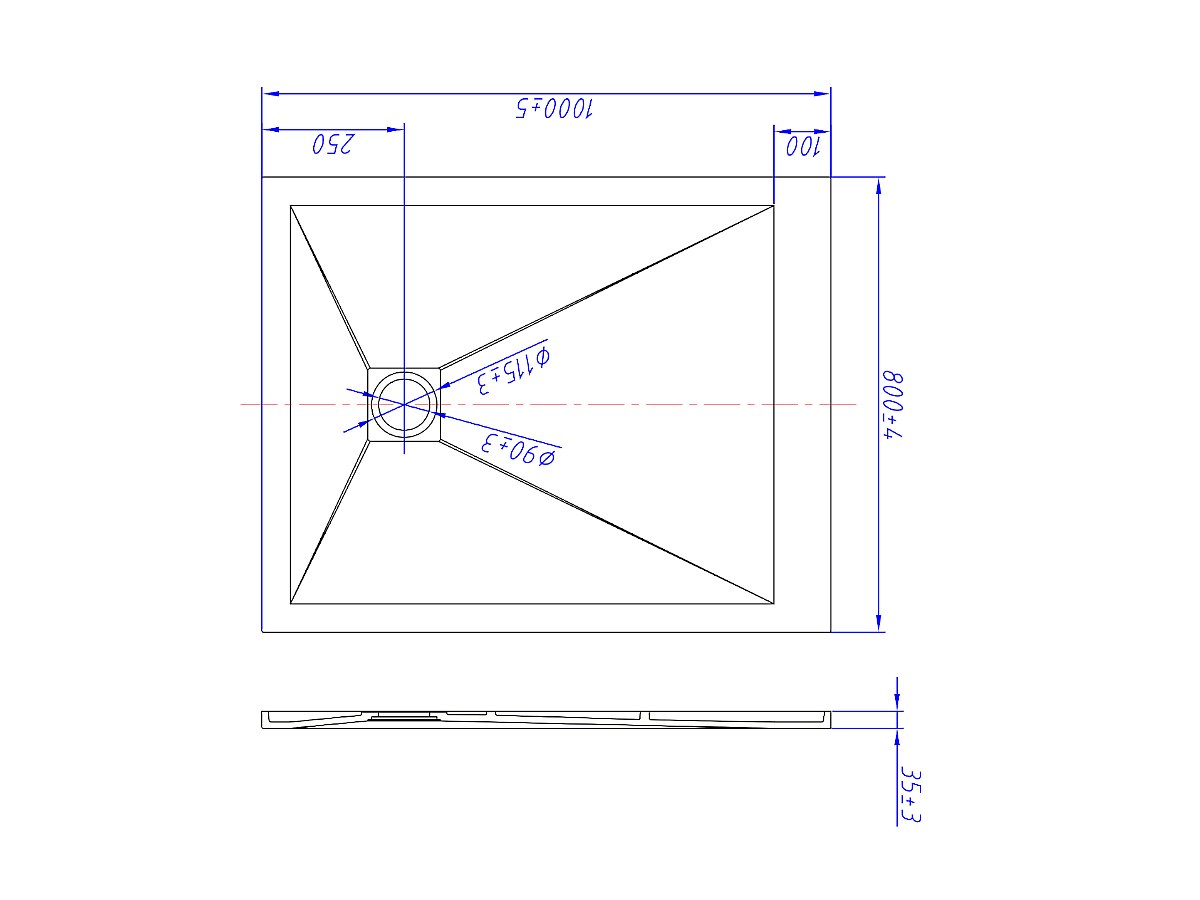 Douchebak MIRNOS sifon inbegrepen - 1000x800x35 mm - Antraciet