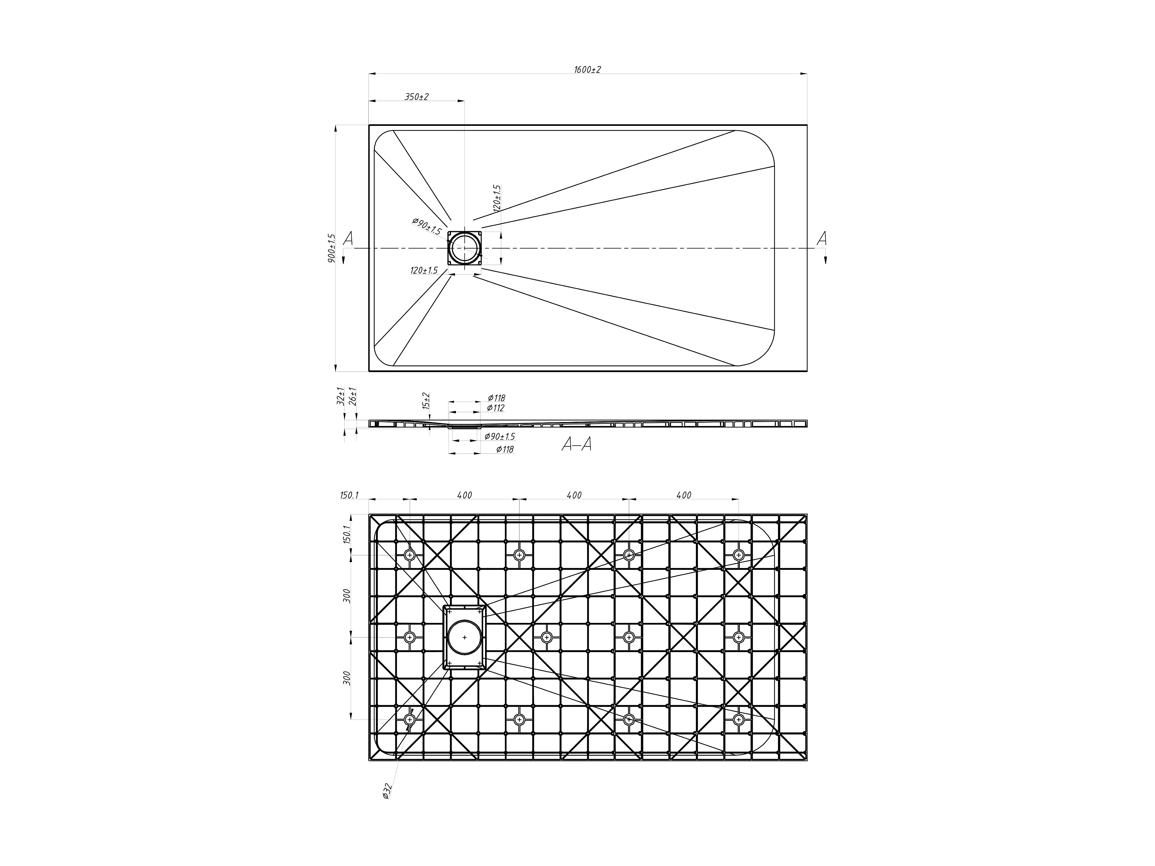 • Douchebak op maat inklortbaar