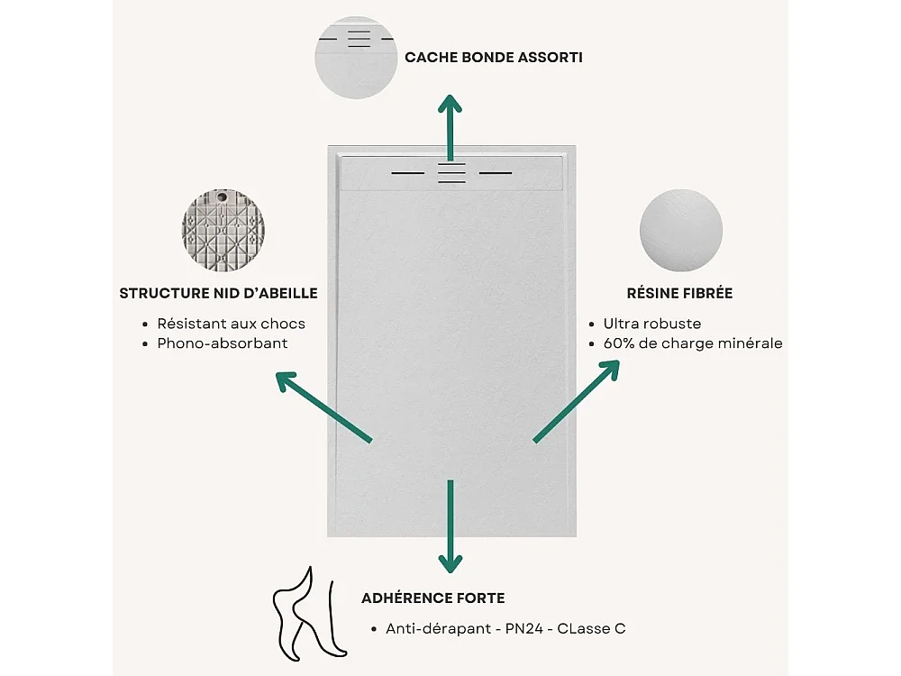 Douchebak van kunsthars 120 x 90 Wit leisteen - Essebagno