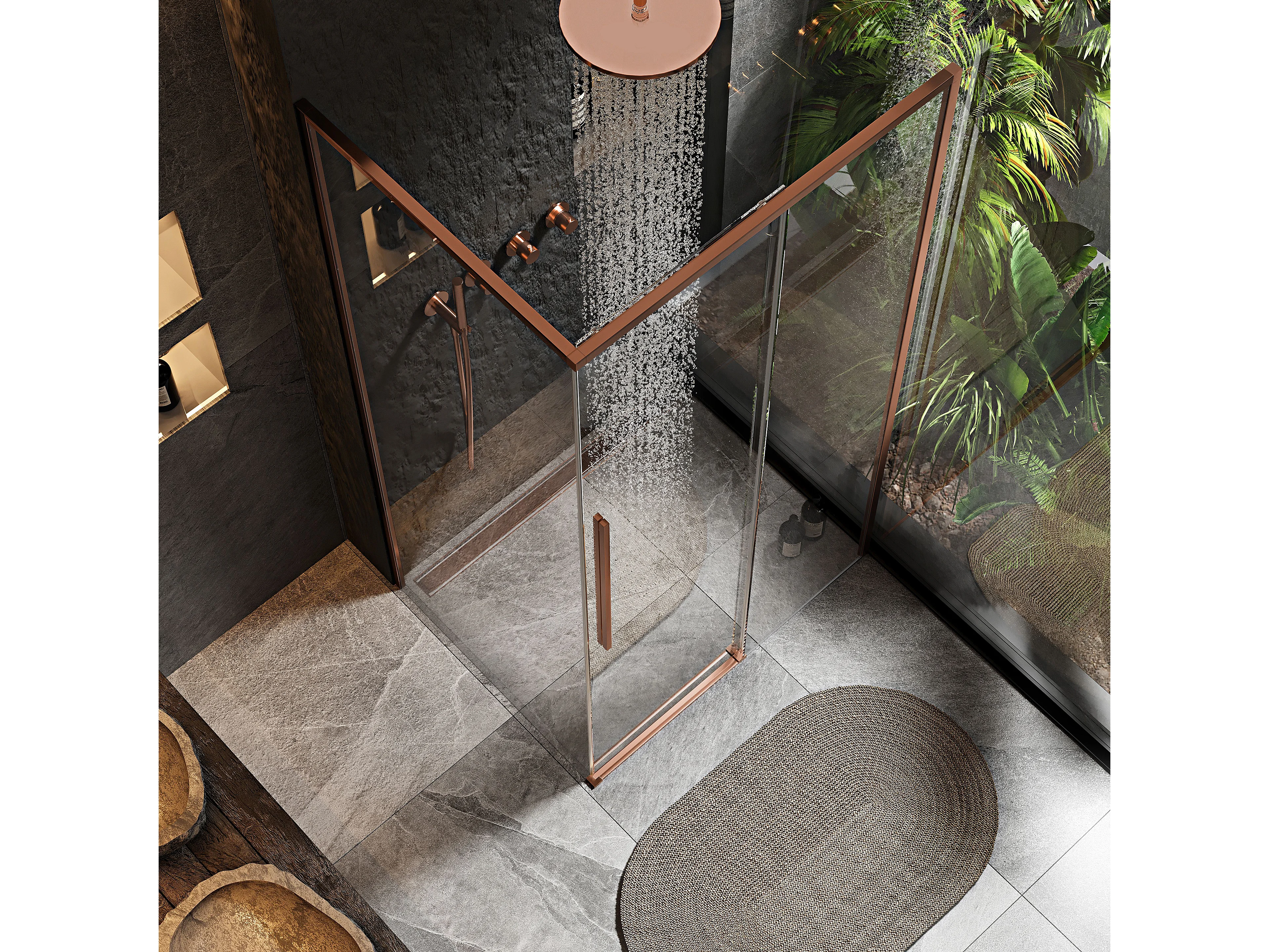 Douchecabine Rea Solar 90X90 Brush Copper + Douchebak Savoy Black
