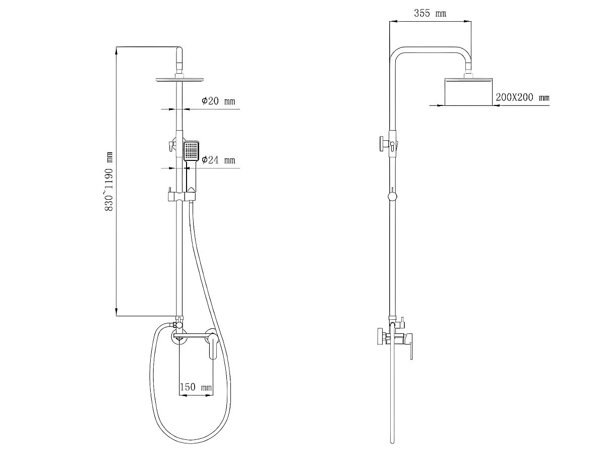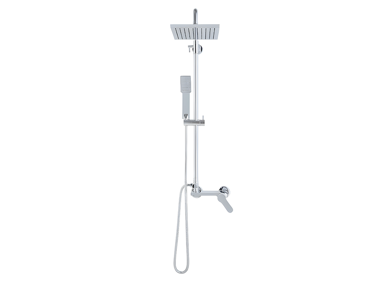 - Hoge douchekop: grote, vierkante douchekop van ABS met 100 massagestralen