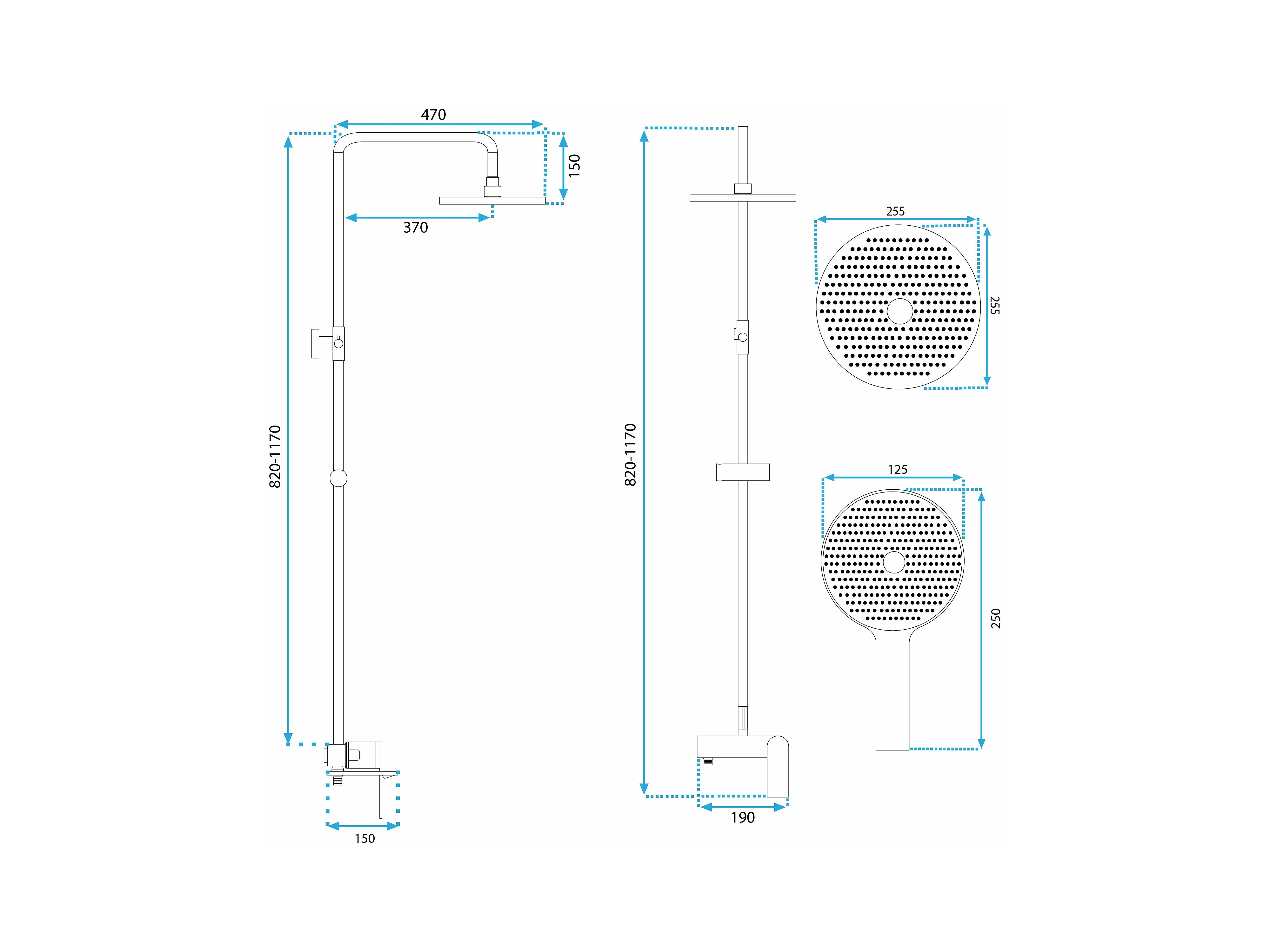 Uitschuifbare stabilisatiestang van 70-120 cm voor inloopdouche, cilindrische aluminium bevestigingsstang met MAT ZWARTE afwerking