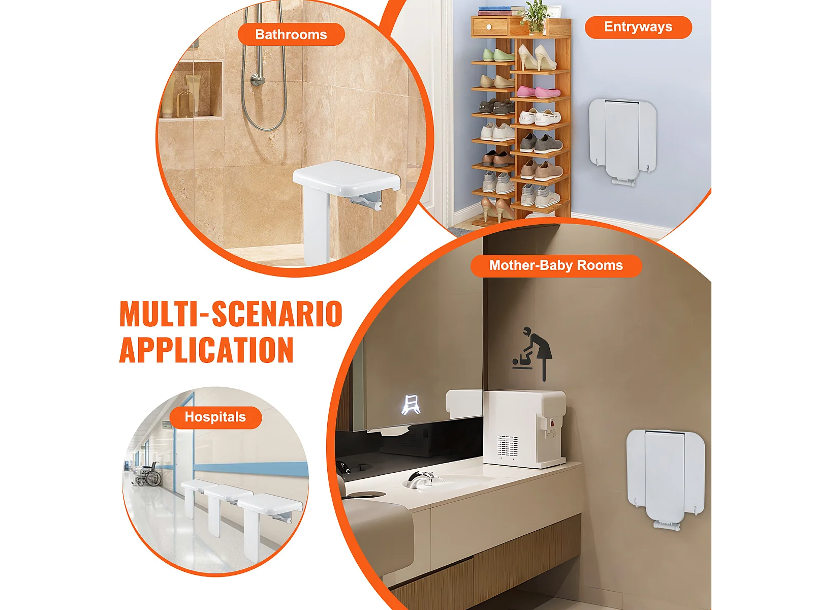 Douchestoel SucceBuy ABS Opvouwbare Douchestoel 39,8 cm x 42,4 cm, Wandmontage, 440 lbs