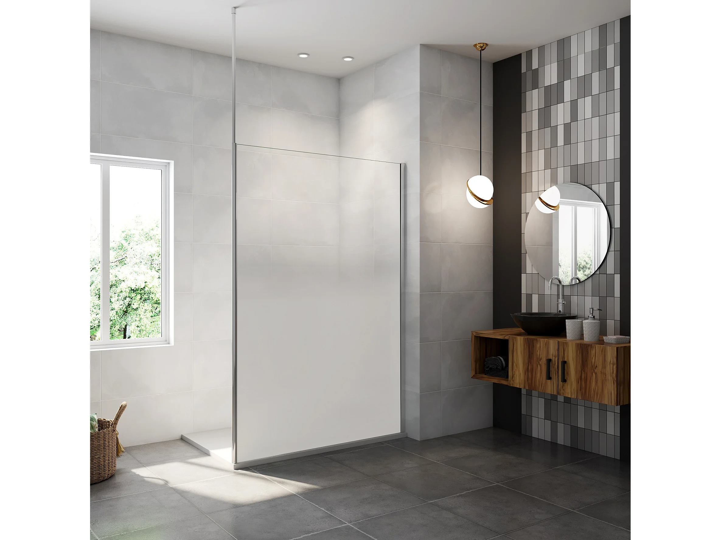 Douchewand van gehard glas met zeefdruk 8 mm glas - 120 x 200 cm - Chromen profielen met Montagestang 90 cm