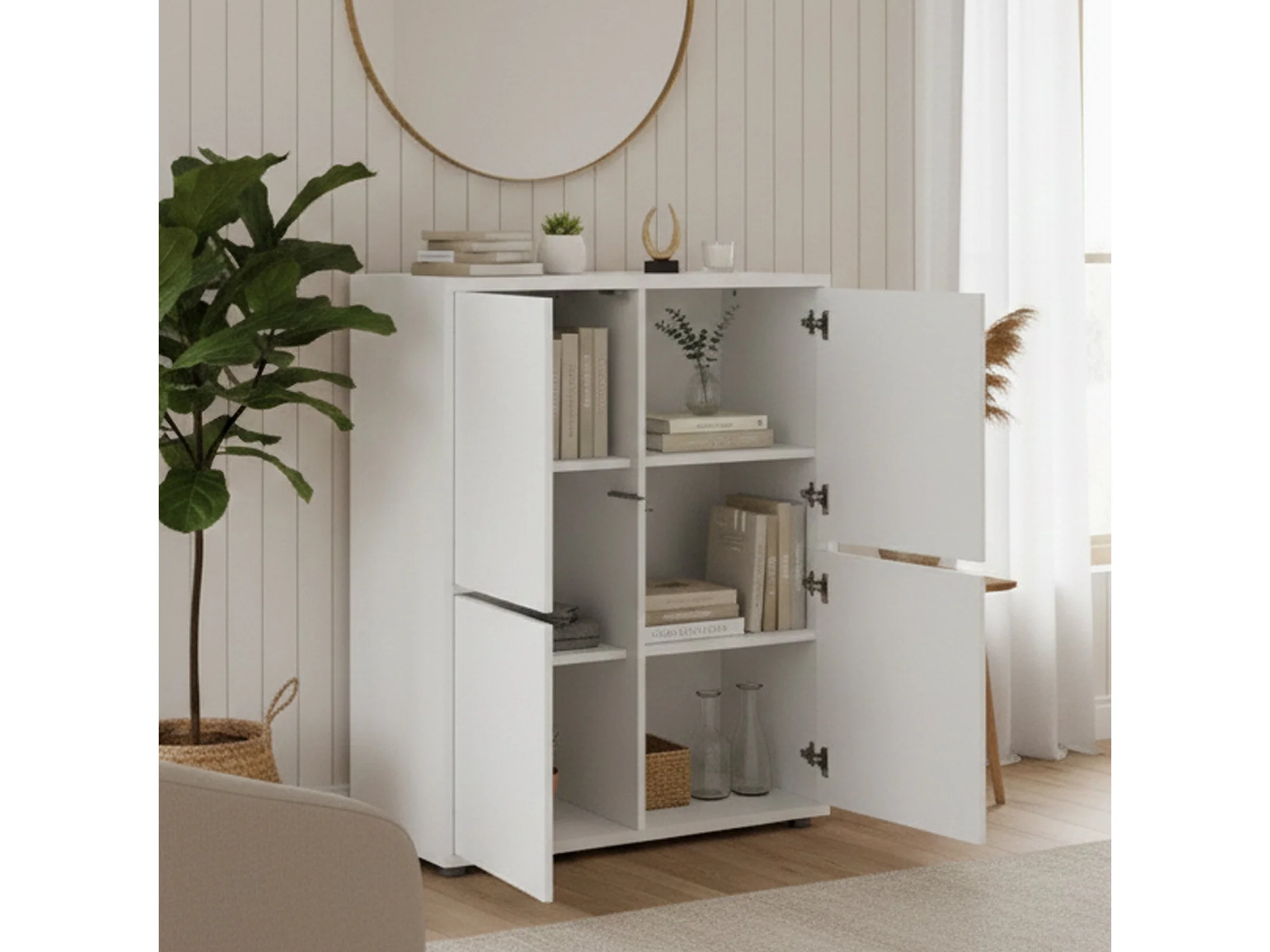 Dpaci dressoir, 4-deurs keukendressoir, Woonkamerbuffet, 100% Made in Italy, 100x41h126 cm, Glanzend wit
