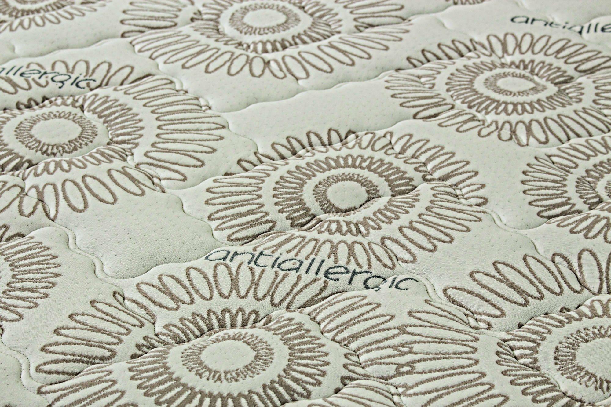TECHNISCHE EIGENSCHAPPEN - Hoogte: 25 cm - 9 zones met gedifferentieerd draagvermogen - Hoogte geheugenlaag: 3 cm, dichtheid: 55 kg/m2 - 800 onafhankelijke pocket-microveren in de enkele maat (80 x 190) en 1600 in het dubbele formaat (160x190) - Omtrekdoos in geëxpandeerd polyurethaan 14 cm hoog met een dikte van 5 cm bedekt met Nano Pollen-stof.