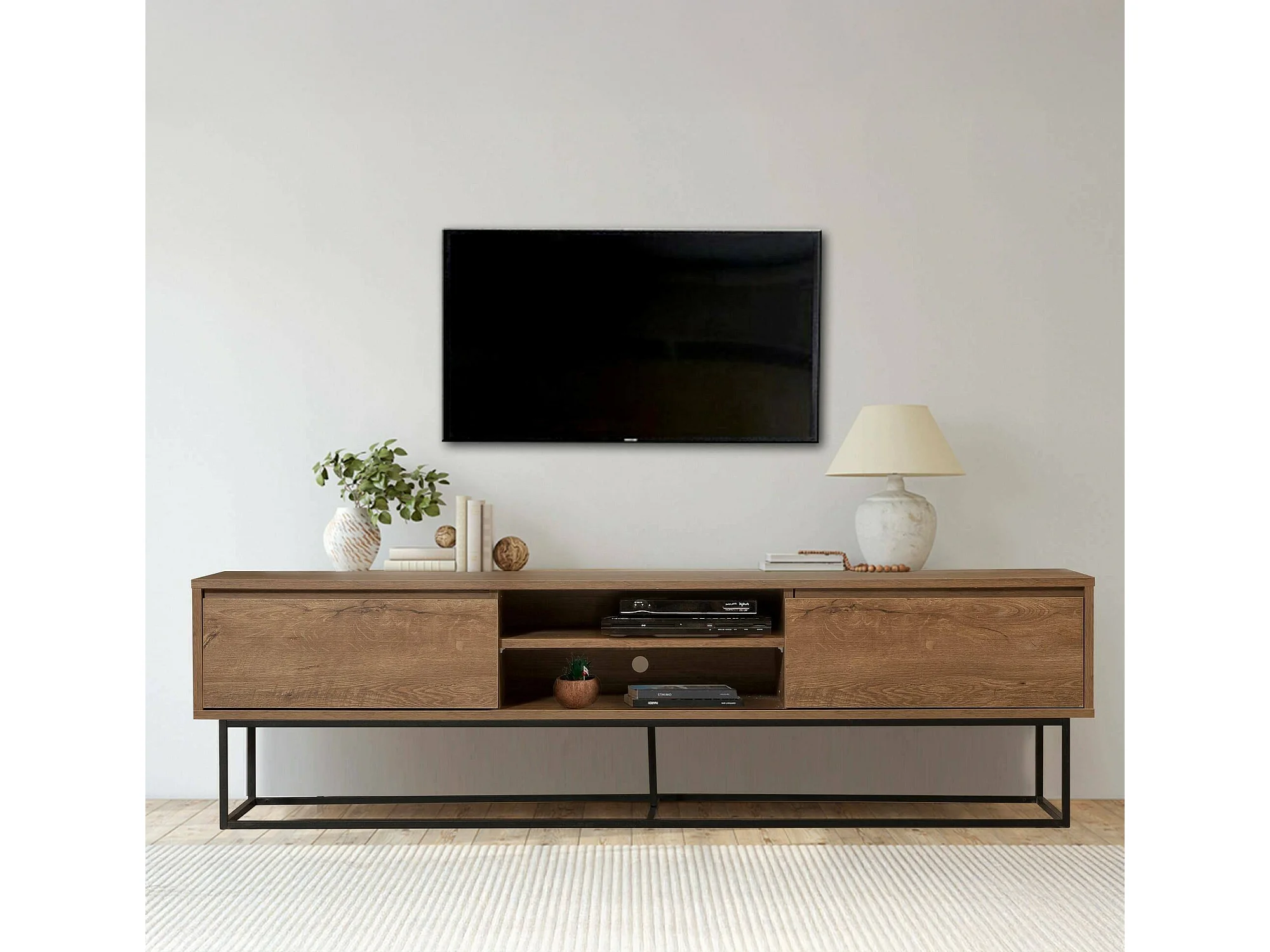 Dpicon tv-meubel, woonkamermeubel, lage tv-meubel, wandstandaard, 180x40h50 cm, walnoot en zwart