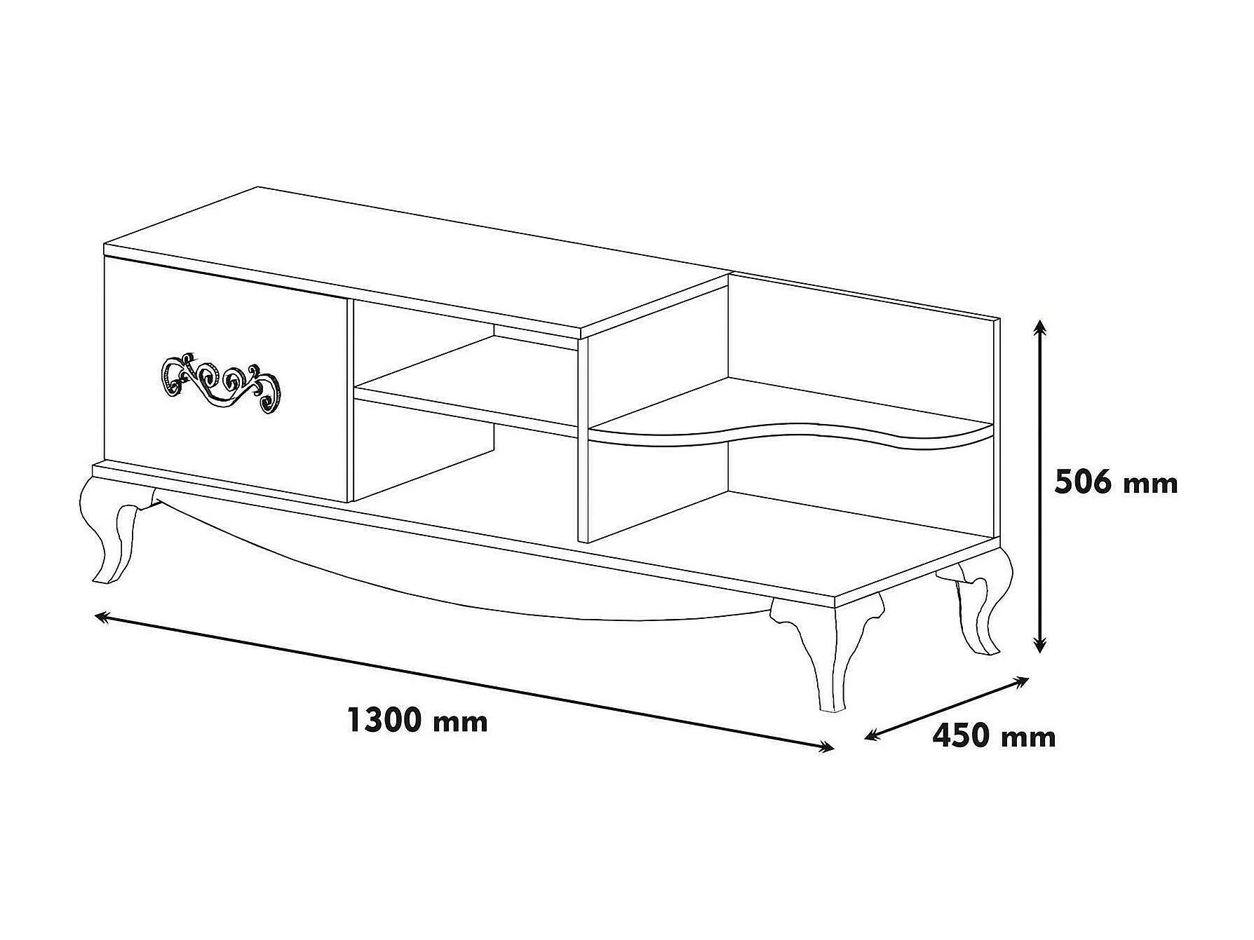 Dporrin tv-meubel, woonkamer dressoir, laag tv-meubel, inbouw wandonderstel, 130x45h51 cm, walnoot en wit
