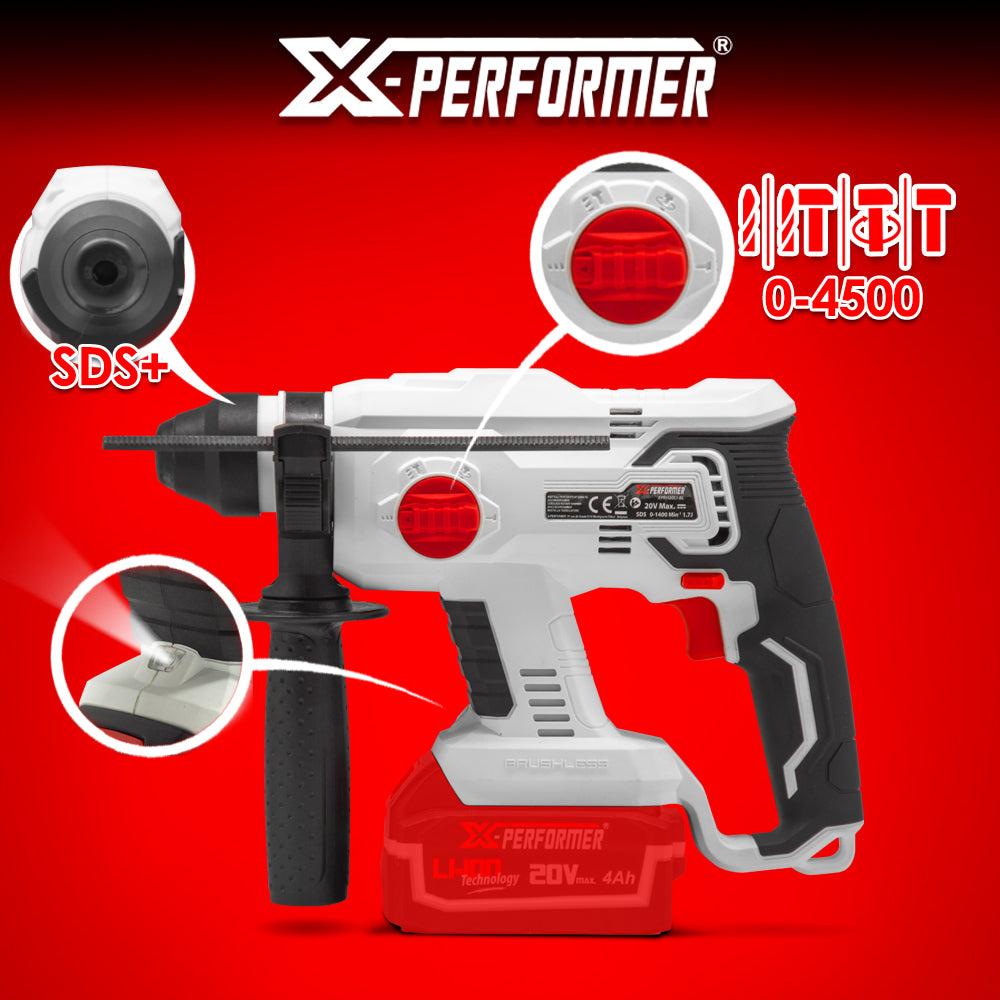 Draadloze boorhamer X-Performer 20V met 4Ah batterij en snellader 2H