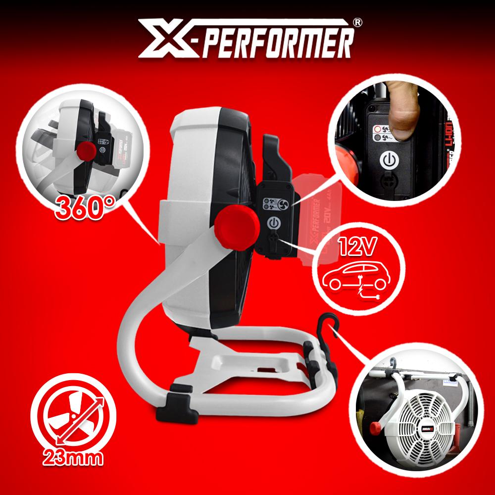 De ventilator wordt geleverd zonder batterij of oplader. U kunt de 2 Ah-batterij (XPBAT2A) of 4 Ah-batterij (XPBAT4A) kiezen, evenals de snellader (XPCHAR1 of XPCHAR2) bij uw eerste aankoop. Daarna kunt u uw apparatuur aanvullen met andere machines uit de X-Performer-serie zonder opnieuw te investeren in nieuwe accessoires, wat een aanzienlijke besparing oplevert.