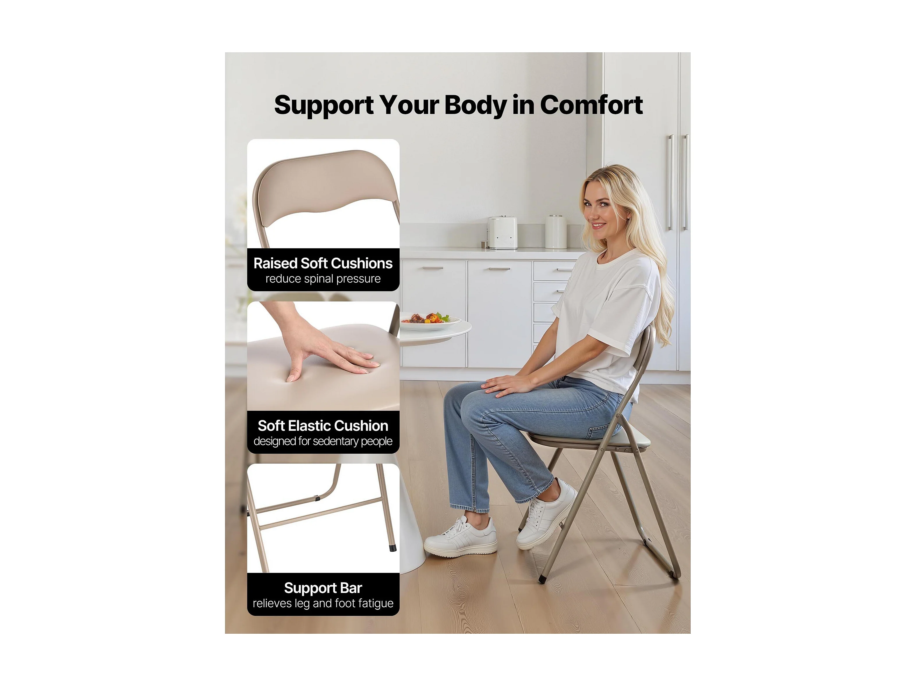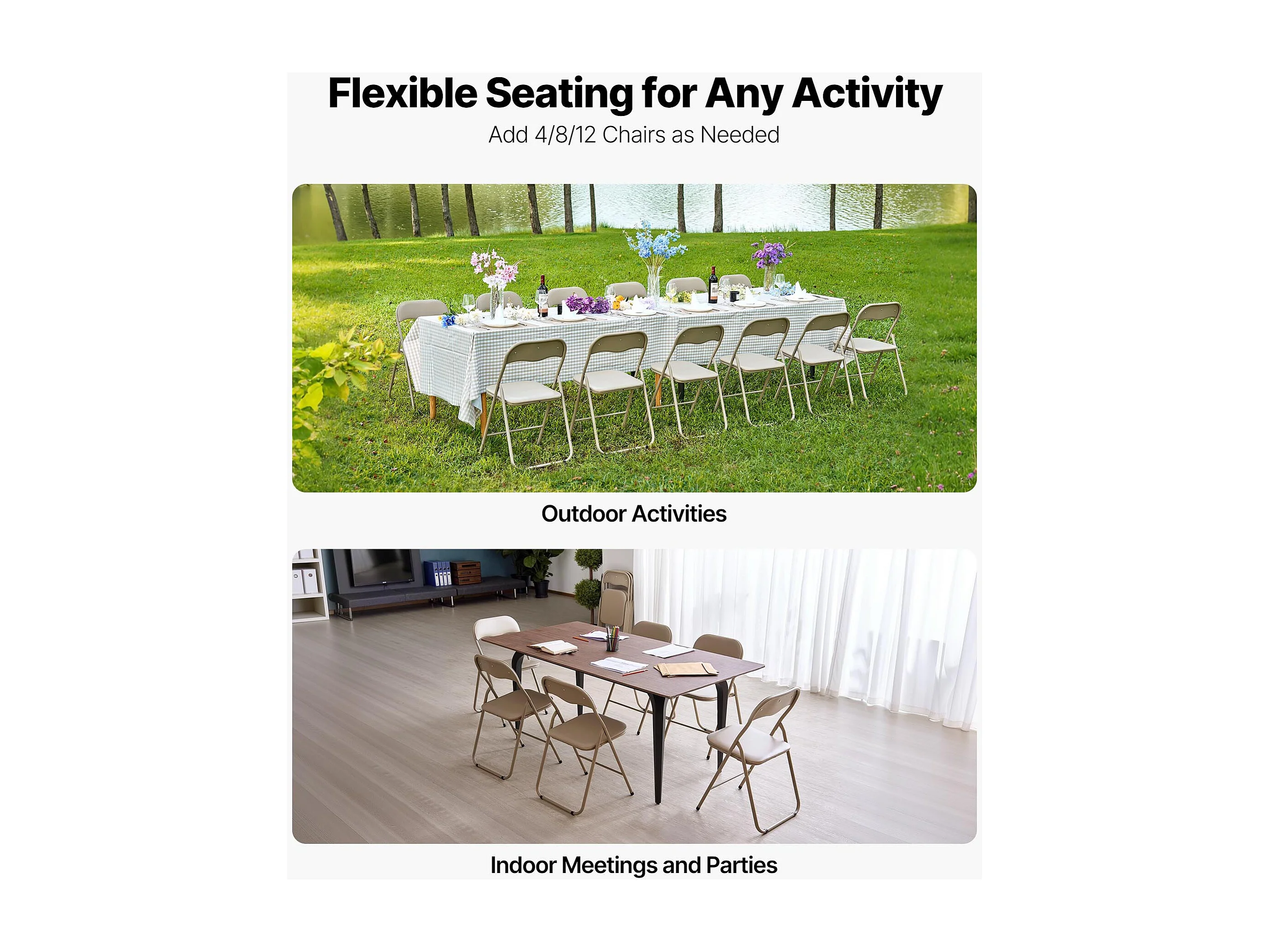 Draagbare Klapstoelen SucceBuy, Set van 4, Lederen Eetkamerstoel met Metalen Frame en Gewatteerd Kussen, voor Binnen en Buiten, Kaki