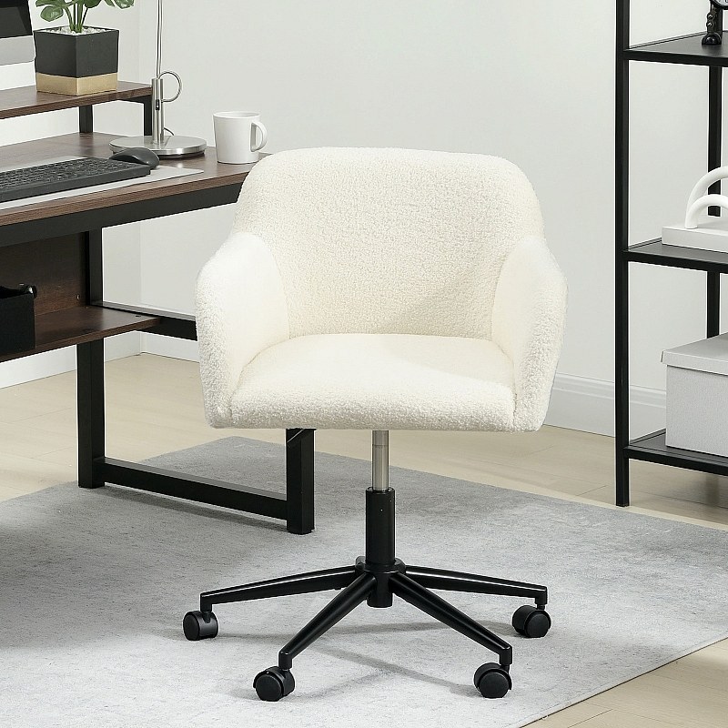 Draaibare bureaustoel met wielen, fleece- en schuimbekleding, in hoogte verstelbaar, voor thuiskantoor, kleur, comfortabel en praktisch