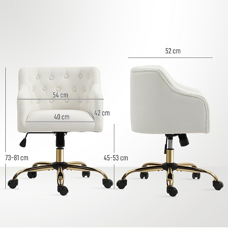 Draaibare bureaustoel voor thuiskantoor, in hoogte verstelbaar met schommelfunctie, bekleding van imitatielinnen, voor slaapkamer of kantoor, beige, comfortabel