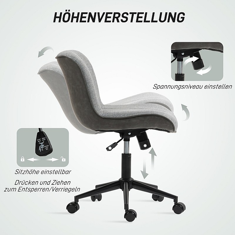 Draaibare bureaustoel zonder armleuningen, in hoogte verstelbaar voor thuiskantoor, schommelfunctie, bekleding in linnenlook, kleur grijs