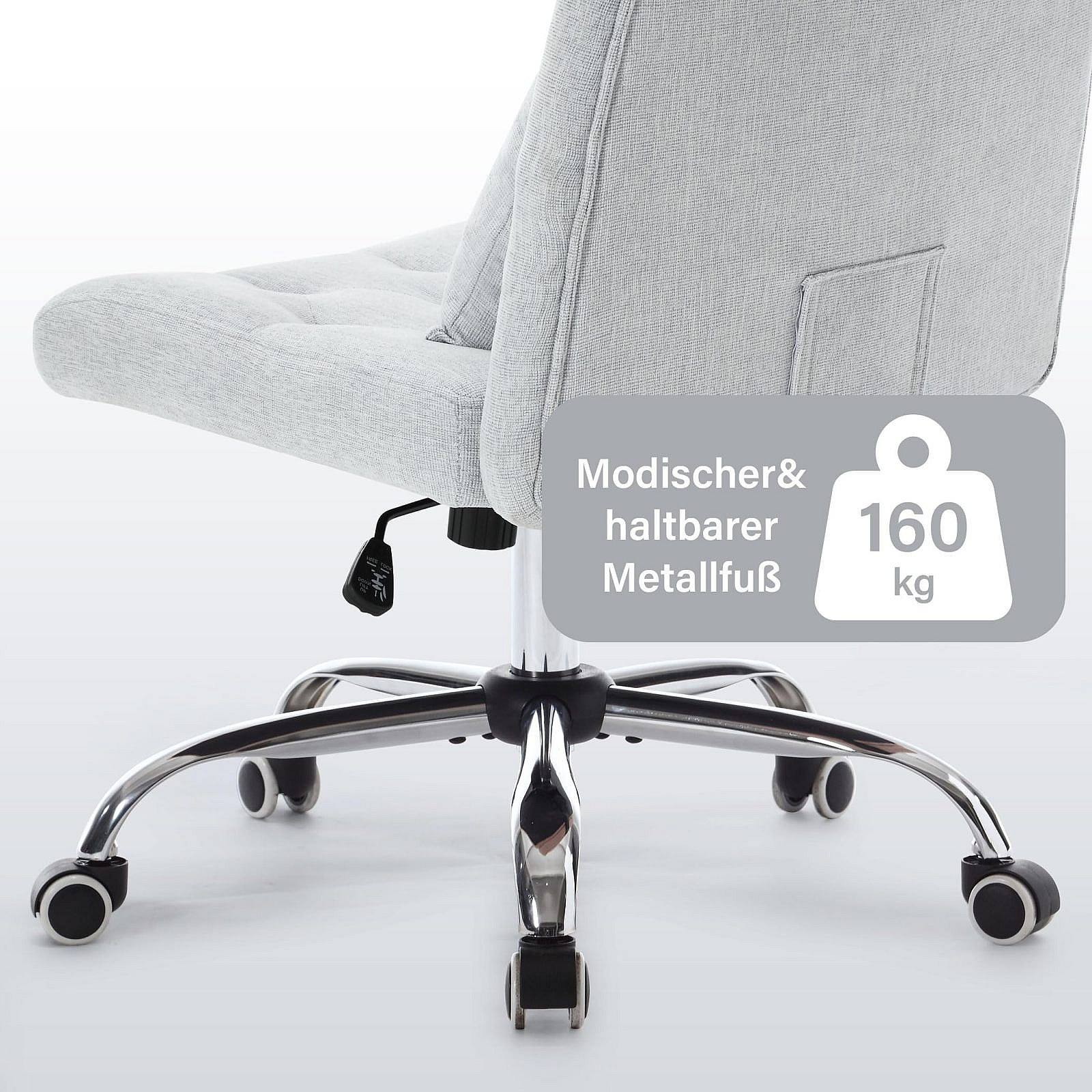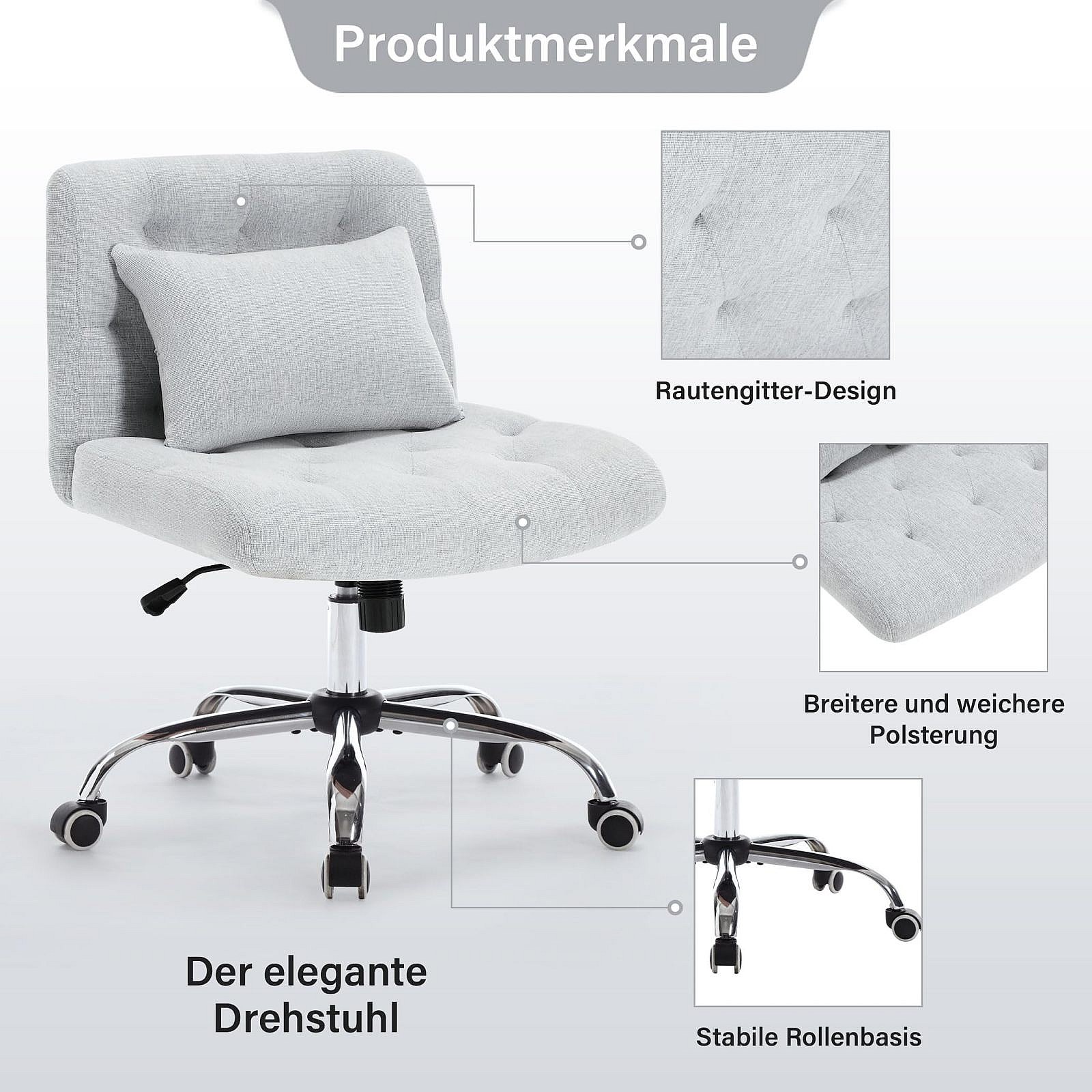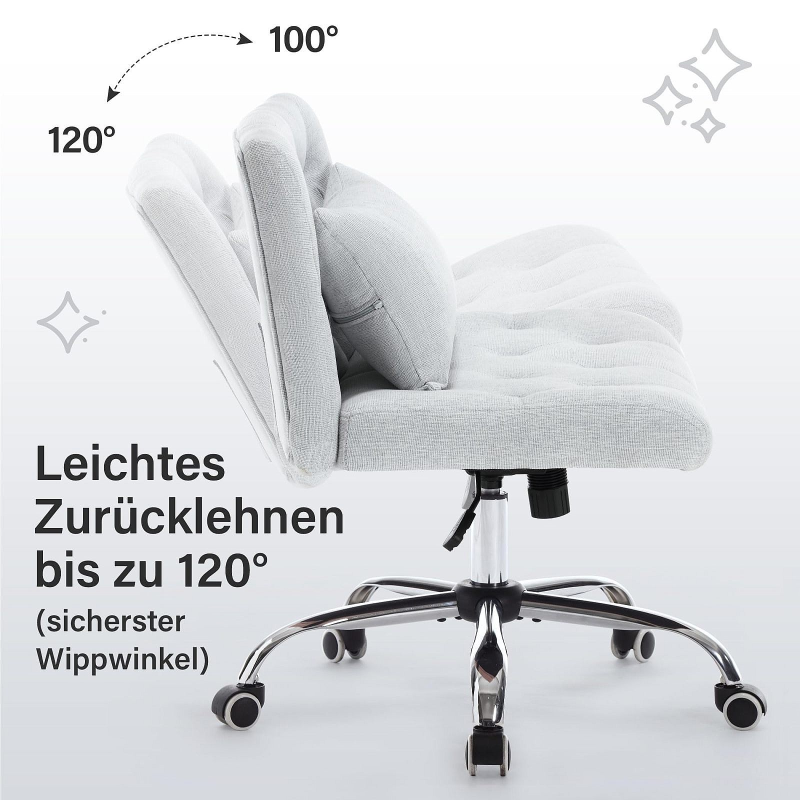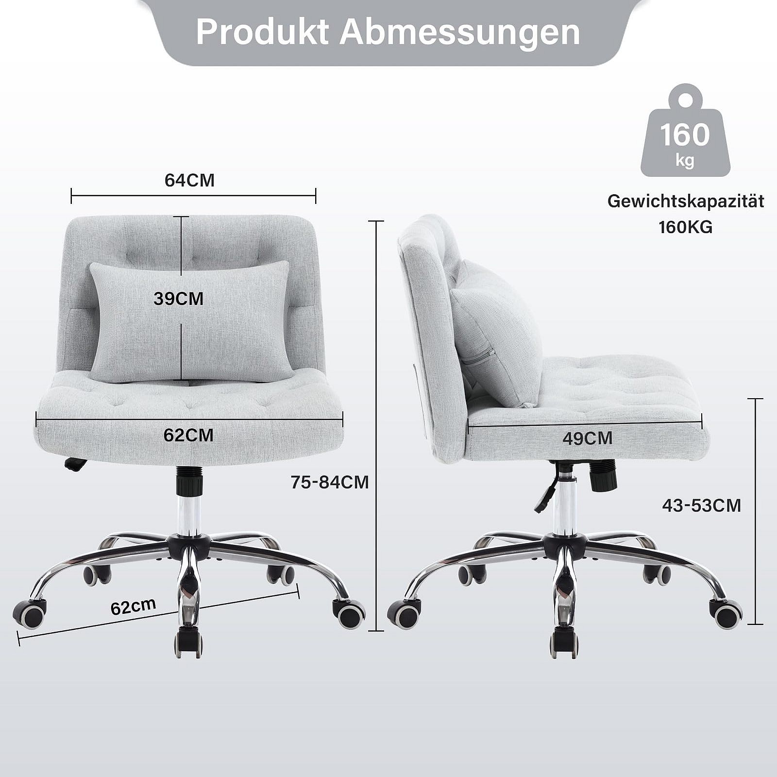 Draaibare bureaustoel zonder armleuningen van linnen met lendenkussen, zitting met wieltjes voor slaapkamer of kantoor, draagvermogen 160 kg